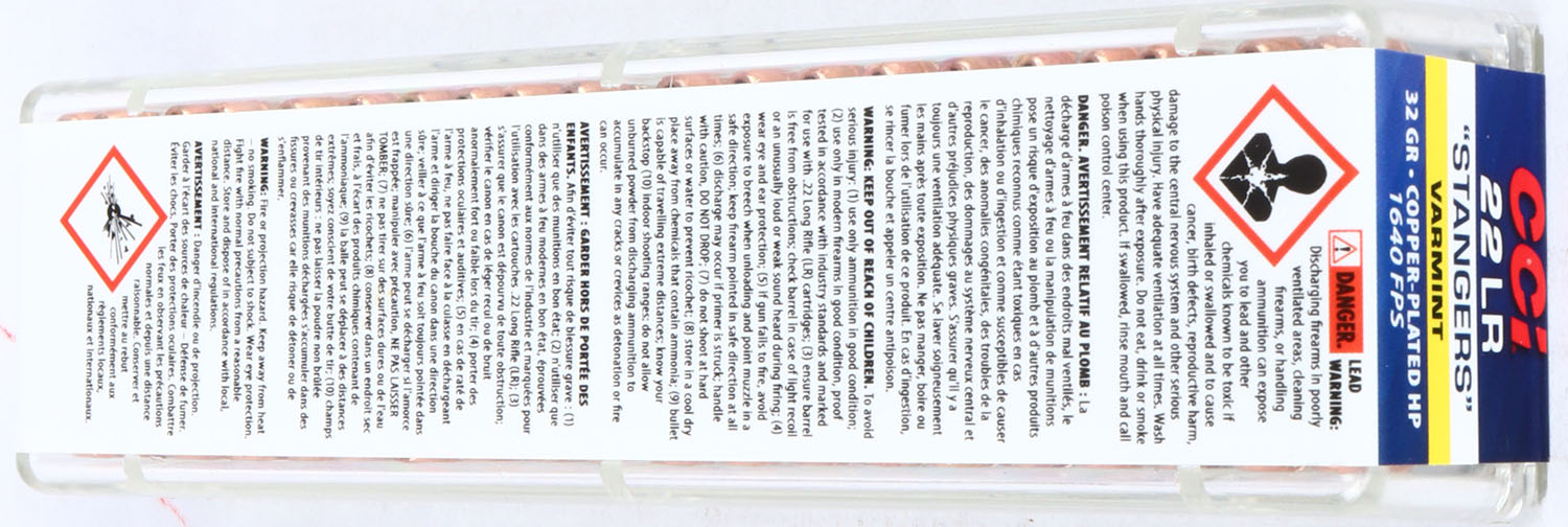 CCi, 22 Plinkster Special Edition ''Stangers'', .22 Long Rifle Stinger, FULL & SEALED, 2pc. Clear plastic tray with multi-colored sealing label, box and label are MINT with mint color, ammo appears mint. Grade: MINT - Value: 10 to 50