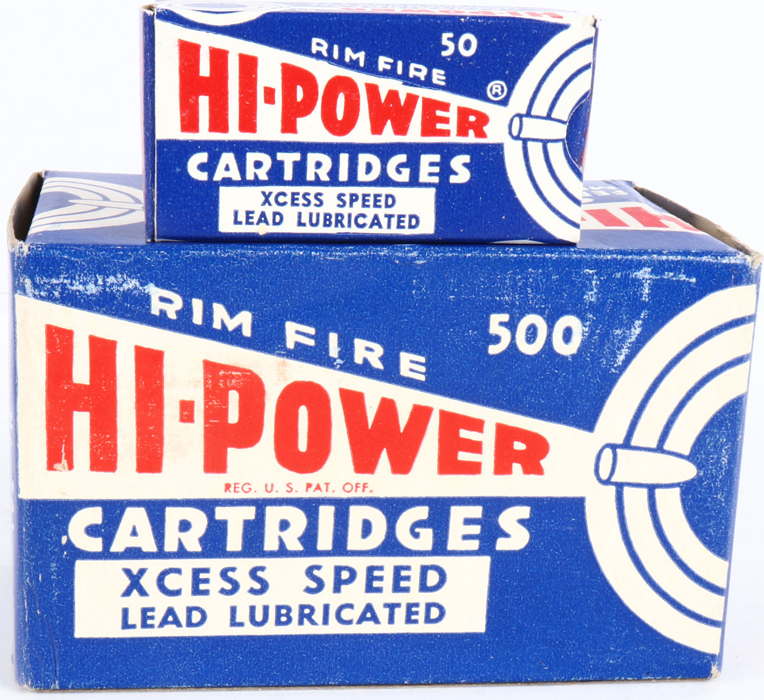 Federal, Hi-Power, .22 Short, Xcess Speed, Full, 500rds. 1pc. Blue white & red brick, brick is solid with excellent color, minor shelf wear, very minor edge & corner wear, end flaps are solid, inside boxes are mint. Grade: Excellent ++ - Value: 100 to 200