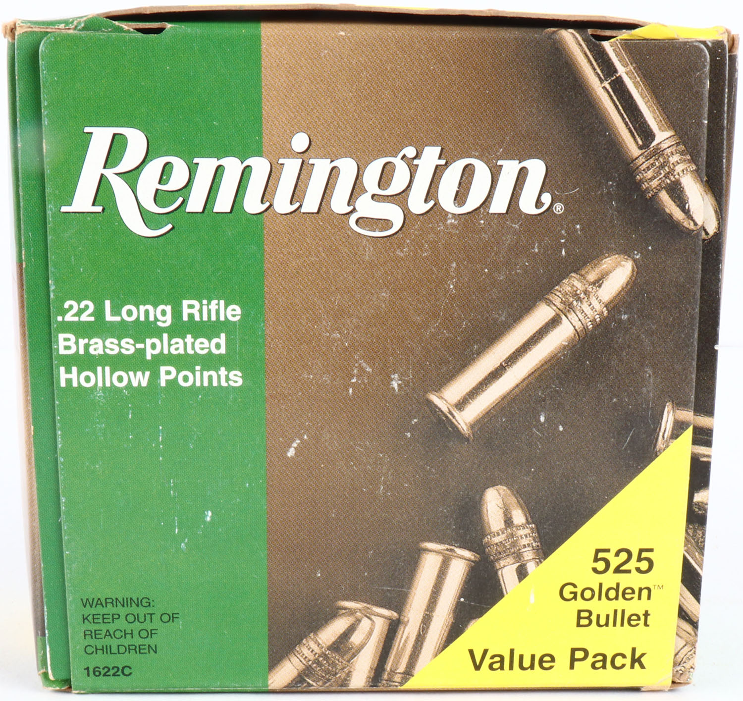 Remington, Golden Bullet Bonus Pack, .22 Long Rifle Hollow Point, High Velocity, Full, 550rds. 1pc. Green bulk box, box is MINT with minty color, corners are sharp, edges are crisp, top flaps are solid, ammo is minty. Grade: MINT - Value: 30 to 90