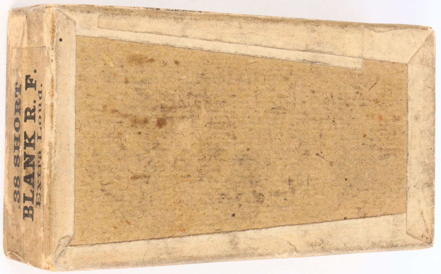 Winchester, .38 Short, Extra Loud Blank Cartridges, FULL & SEALED, 2pc. Buff box with buff top & side sealing labels, box is solid with very good to excellent color, some age soiling & corner wear, very minor edge wear, labels are intact. Grade: Excellent + - Value: 10 to 50