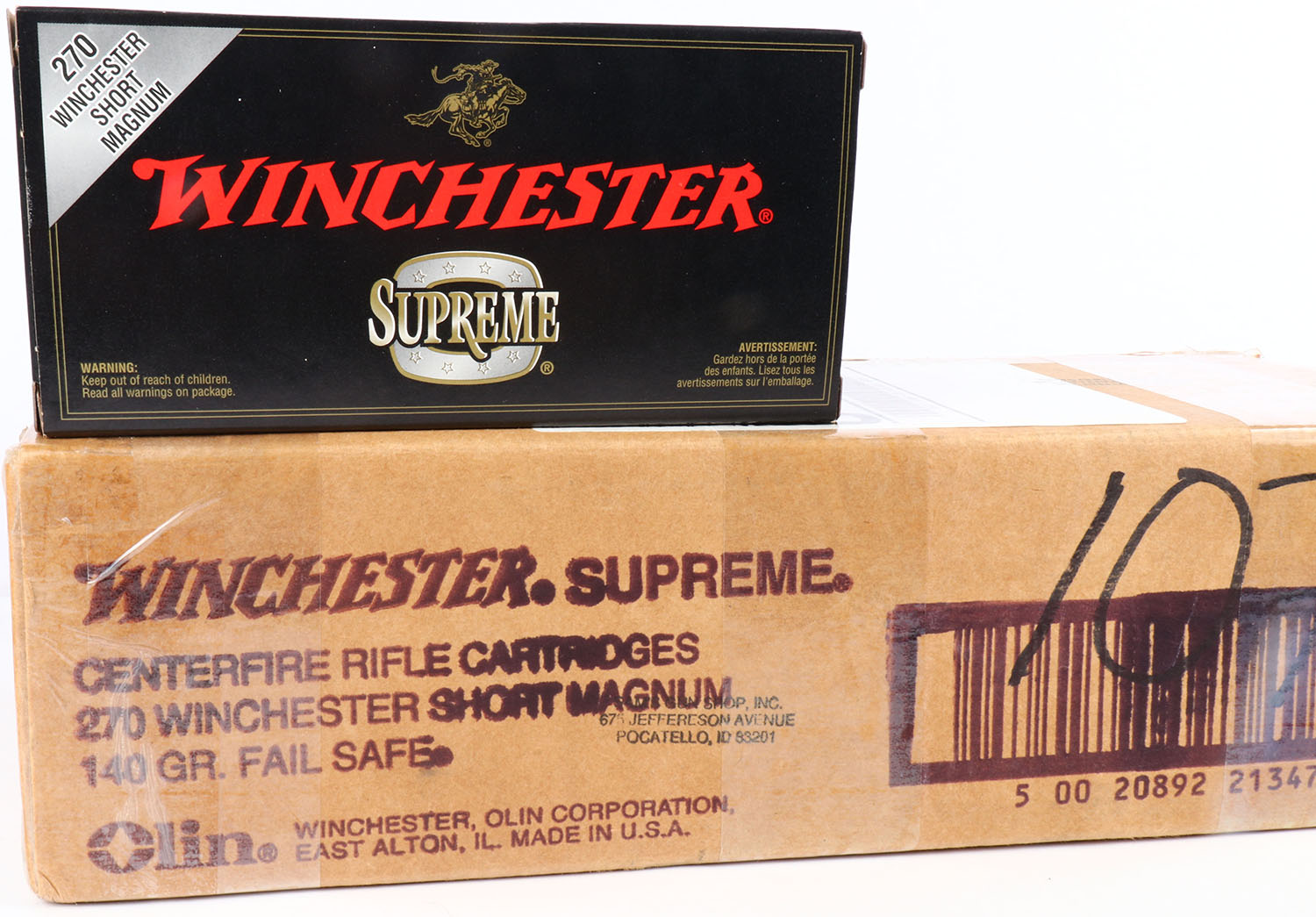 Winchester, Supreme, .270 WSM, 140 Grain Fail Safe, Full Case (10 Boxes, 200rds.), inside boxes are mint. Grade: MINT - Value: 200 to 600