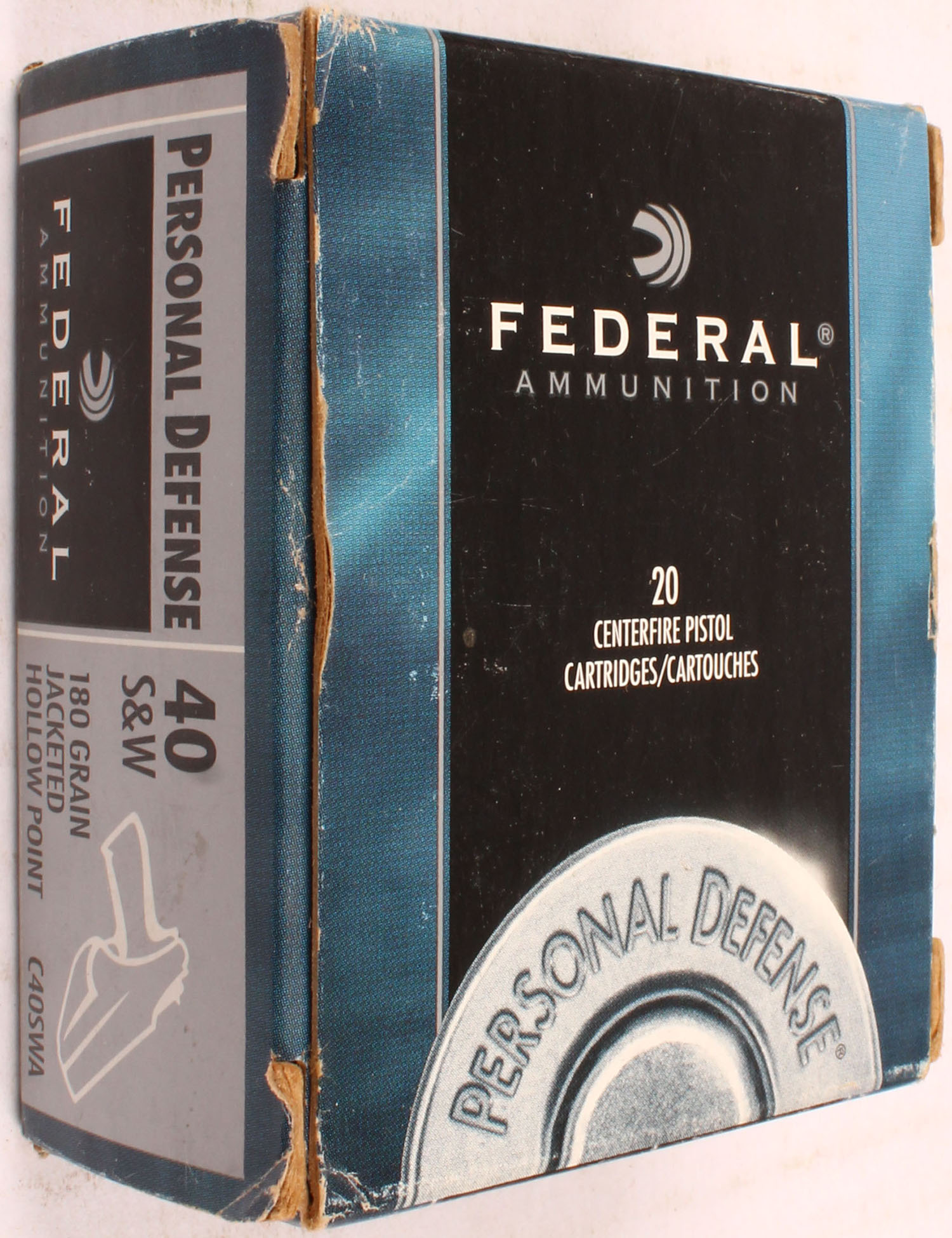 Federal, Personal Defense, 40 S&W, 180 Grain JHP, Full, 1pc. multi-colored box, box is solid with excellent color, Ammo is excellent. Grade: Excellent - Value: 20 to 60