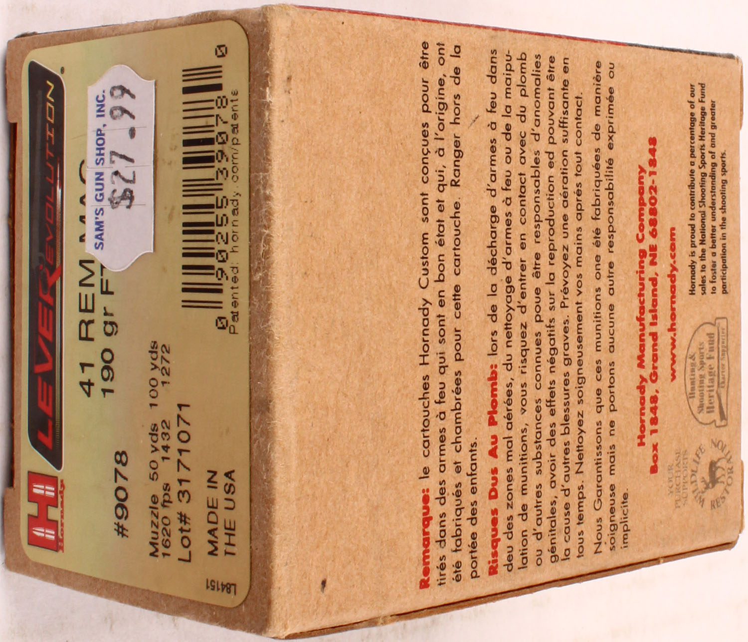 Hornady, Lever Revolution, 41 Rem Mag, 190 Grain FTX, Full, 1pc. multi-colored box, box is solid with excellent color, Ammo is excellent. Grade: Excellent ++ - Value: 20 to 60