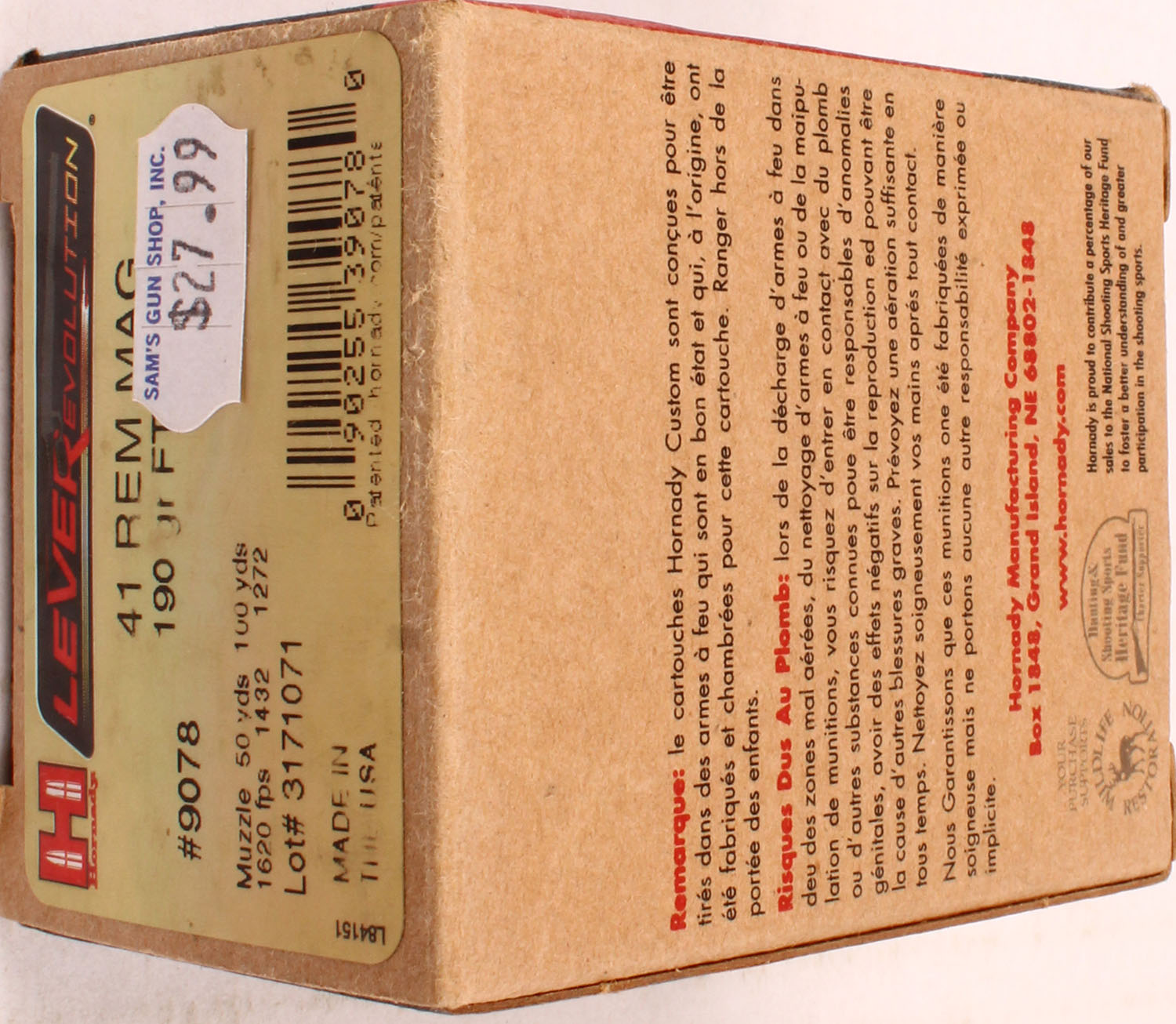 Hornady, Lever Revolution, 41 Rem Mag, 190 Grain FTX, Full, 1pc. multi-colored box, box is solid with excellent color, Ammo is excellent. Grade: Excellent ++ - Value: 20 to 60