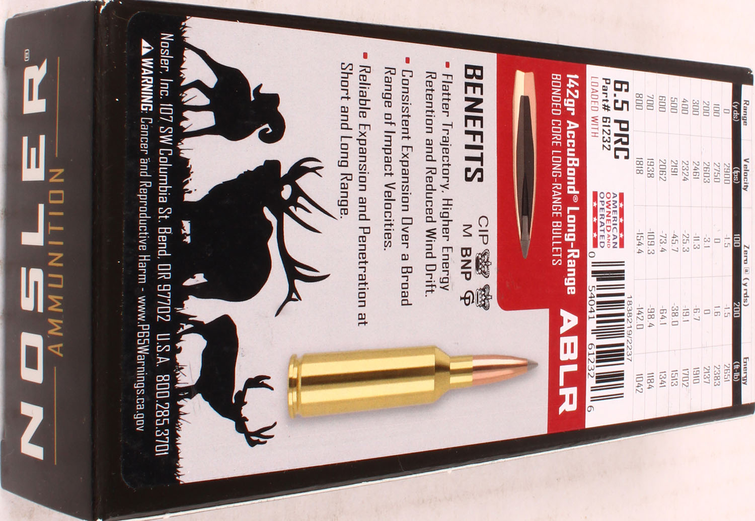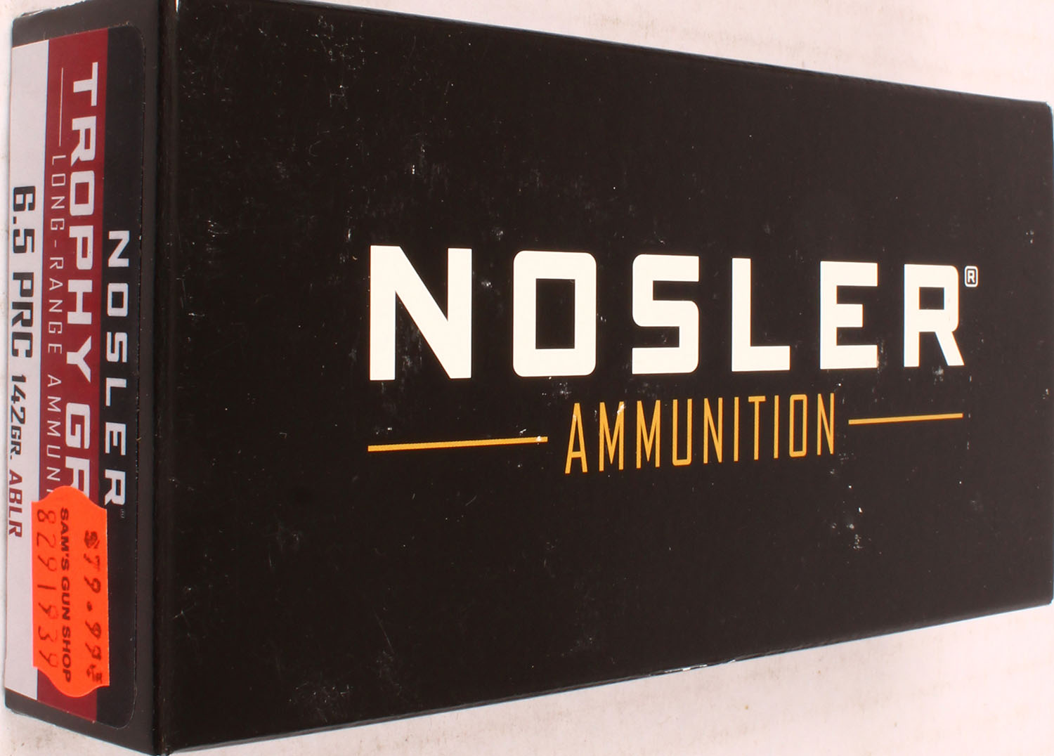 Nosler, Trophy Grade, 6.5 PRC, 142 Grain ABLR, Full, 1pc. multi-colored box, box is solid with excellent color, Ammo is excellent. Grade: Excellent ++ - Value: 20 to 80