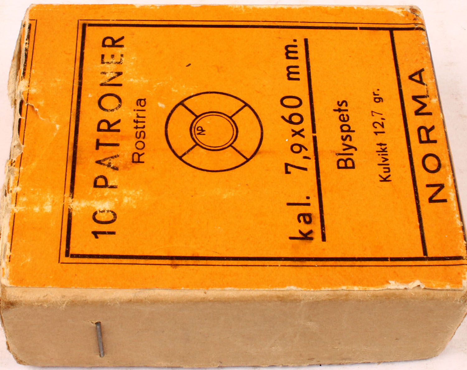 Norma, 7.9x60mm, Full, 1pc. multi-colored box, box is solid with very nice color, Ammo is excellent. Grade: Very Good ++ - Value: 10 to 40
