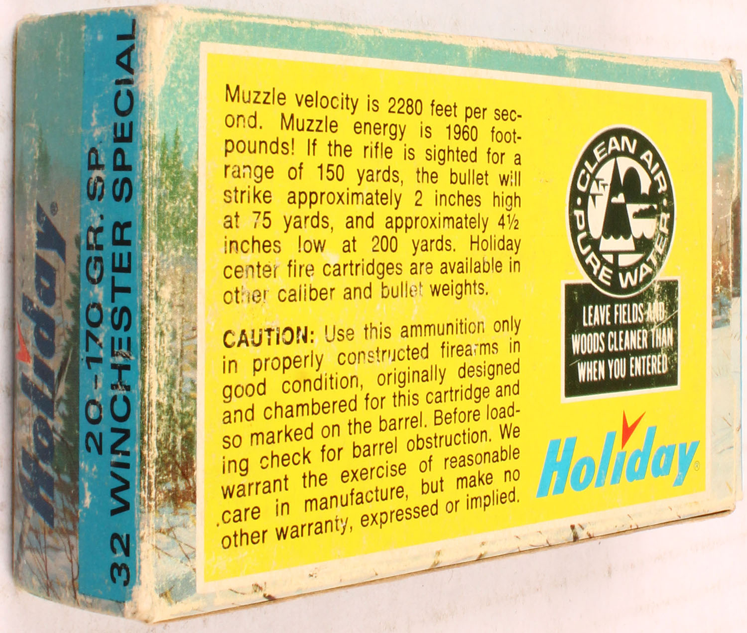 Holiday, 32 Winchester Special, 170 Grain Soft Point, Full, 1pc., multi-colored box, box is solid, light edge wear, Ammo is excellent. Grade: Excellent - Value: 20 to 80