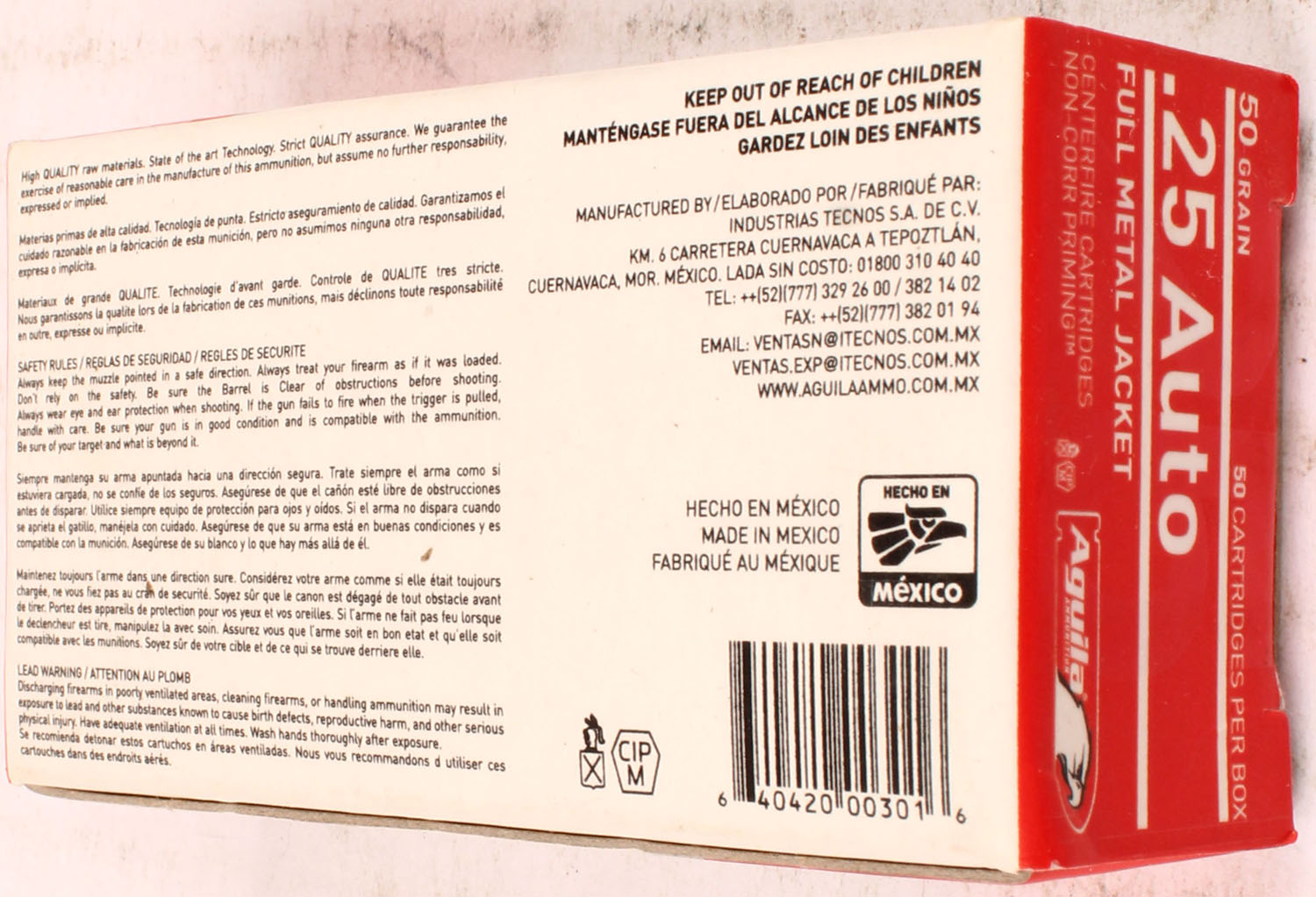 | Aguila, 25 Auto, 50 Grain FMJ, Full, 1pc. Multi-colored box, box...