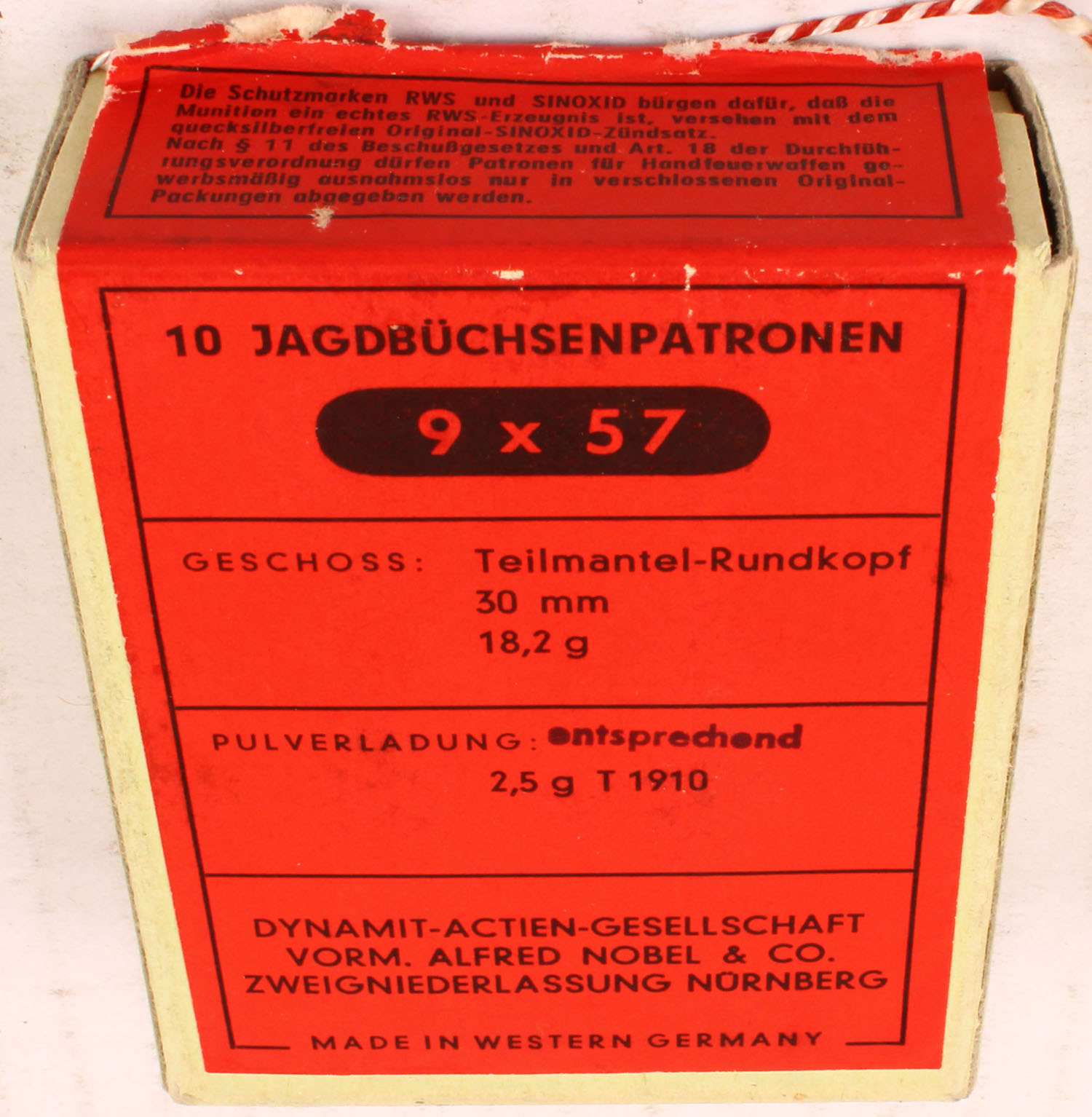 RWS, 9x57, FULL & SEALED, 1pc. Multi-colored box, box is solid, with excellent color. Grade: Excellent ++ - Value: 20 to 80