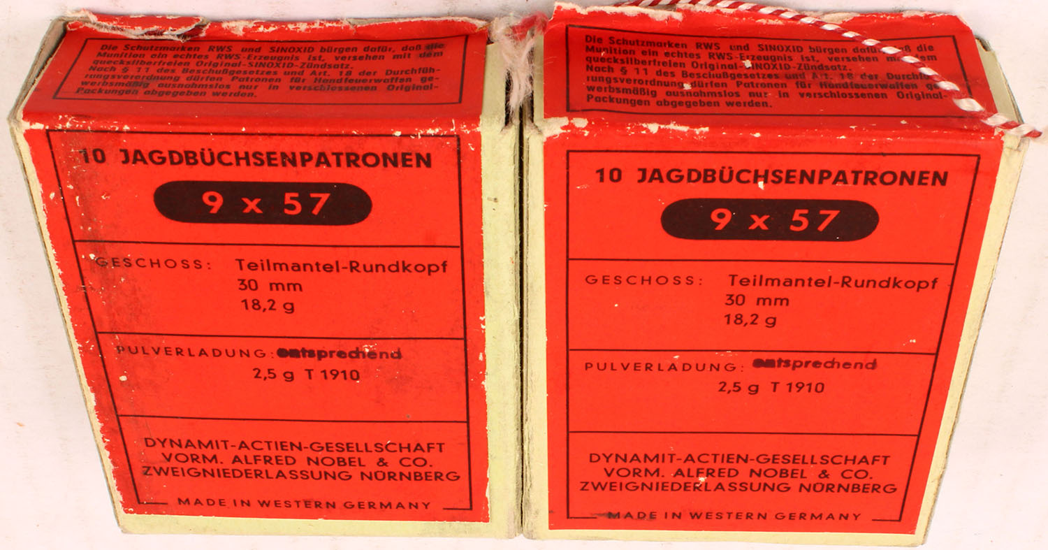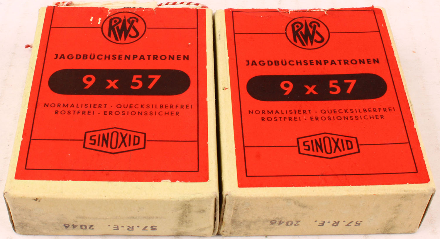 Lot of 2 RWS, 9x57, FULL & SEALED/Full, 1pc. Multi-colored box, box is solid, with excellent color, Ammo is excellent. Grade: Excellent ++ - Value: 20 to 80