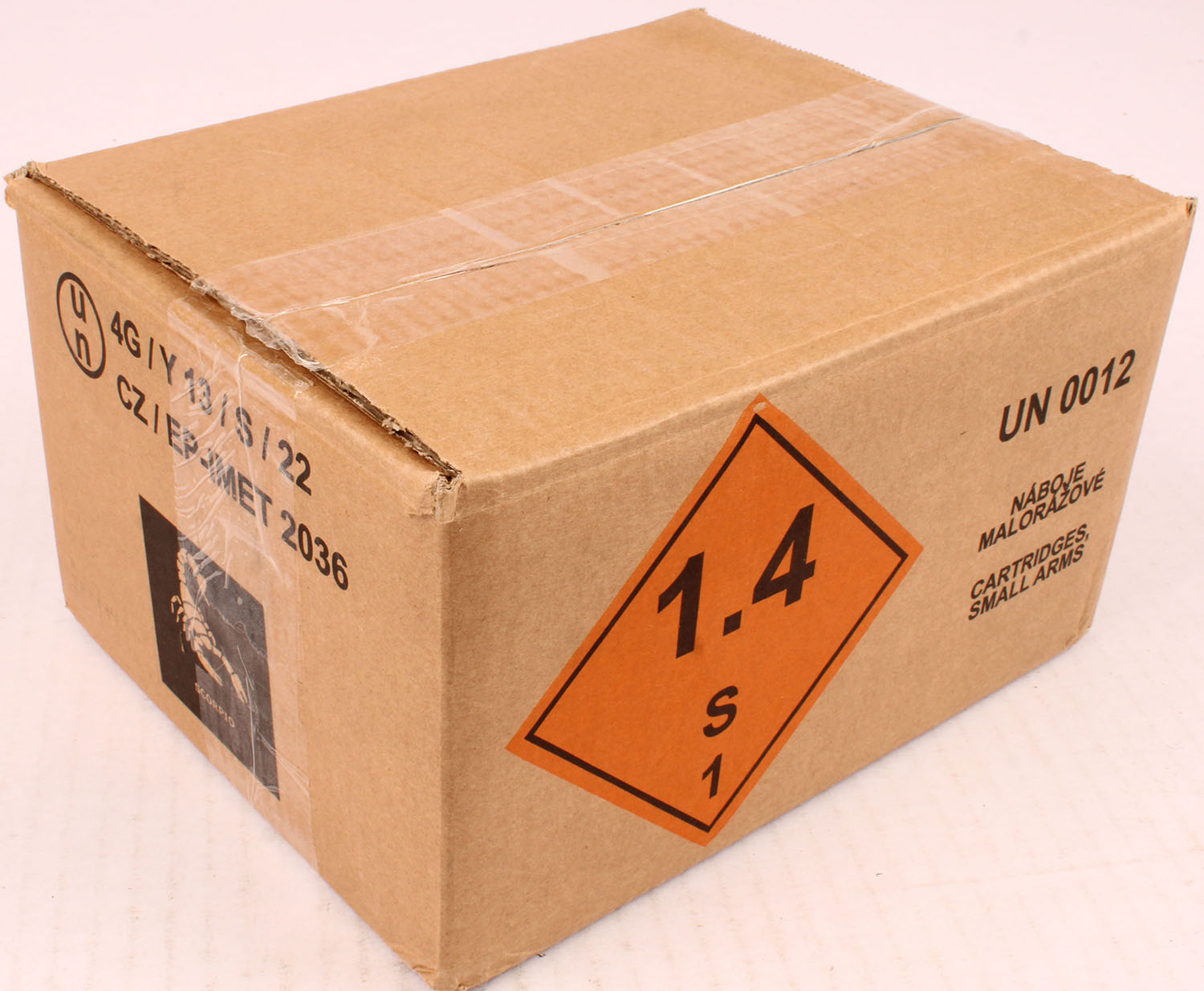 CASE of STV Scorpio, 9mm Luger, 124 Grain FMJ, FULL & SEALED Case, 1pc. multi-colored box, box is solid, with excellent color. Grade: Excellent ++ - Value: 200 to 600