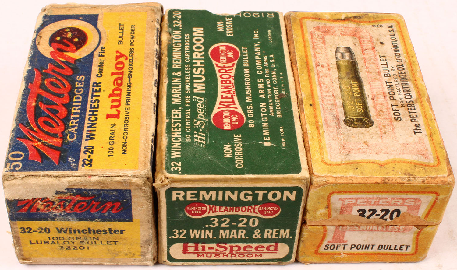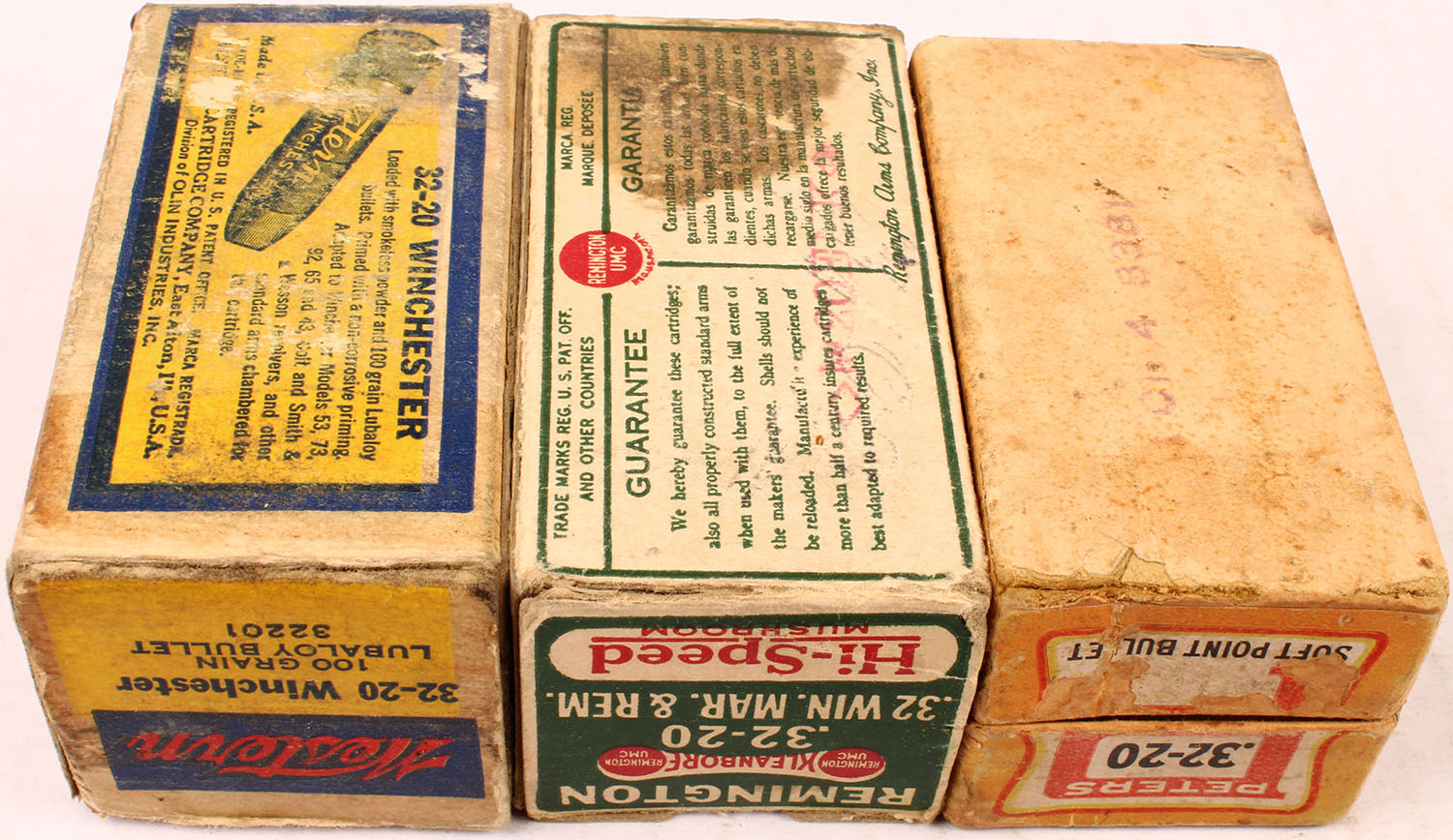 Mixed Mfg., Lot of (3) .32-20 boxes, boxes are all full of mixed ammo, boxes are solid with good to very good color, ammo is very good to excellent. Grade: Very Good - Value: 20 to 80