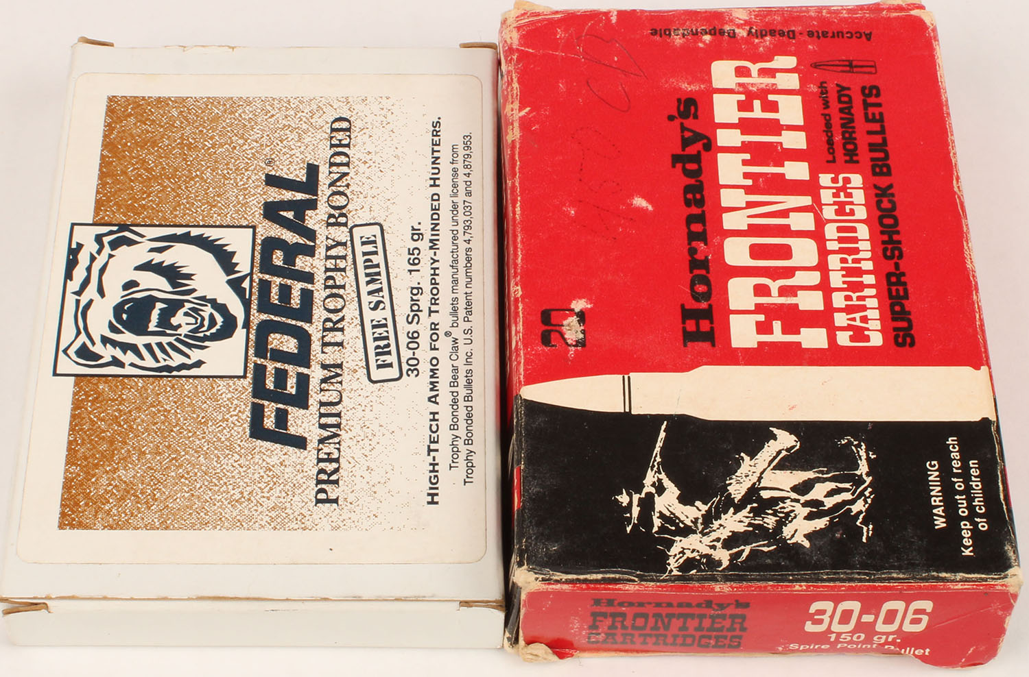 Mixed Mfg., Lot of (2) .30-06 boxes, Federal box is full & correct, Hornady Box is partial 8rds., both boxes are solid with excellent color, ammo is excellent. Grade: Excellent - Value: 10 to 50