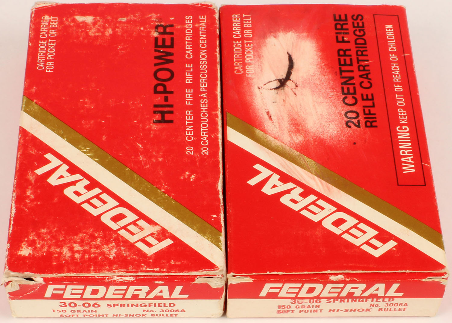 Federal, Lot of (2) .30-06 Springfield, boxes are full of mixed ammo, boxes are solid with very good to excellent color, ammo is excellent. Grade: Excellent - Value: 10 to 60