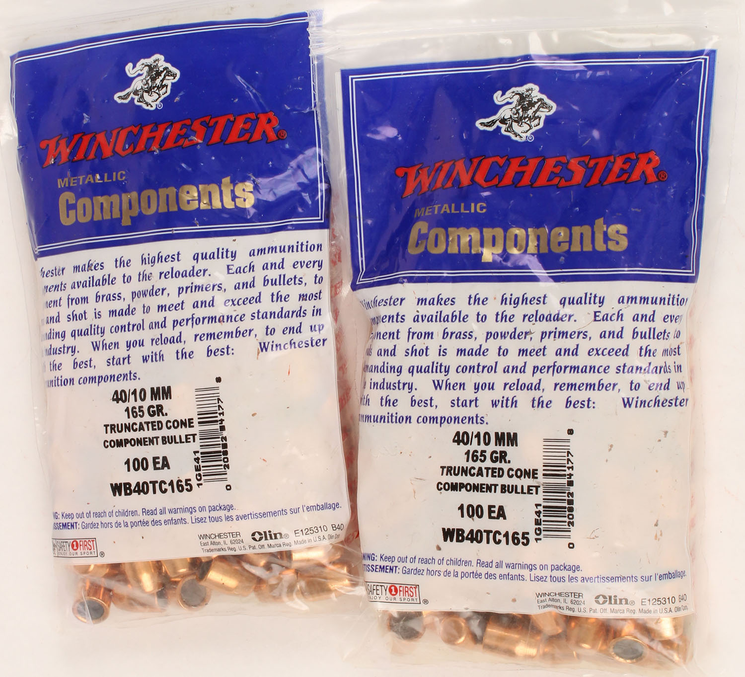 Winchester, Lot of (2) bags of .40 Cal./10mm, 165 Grain Truncated Cone, both bags of 100rds. are full & sealed. Grade: MINT - Value: 20 to 60