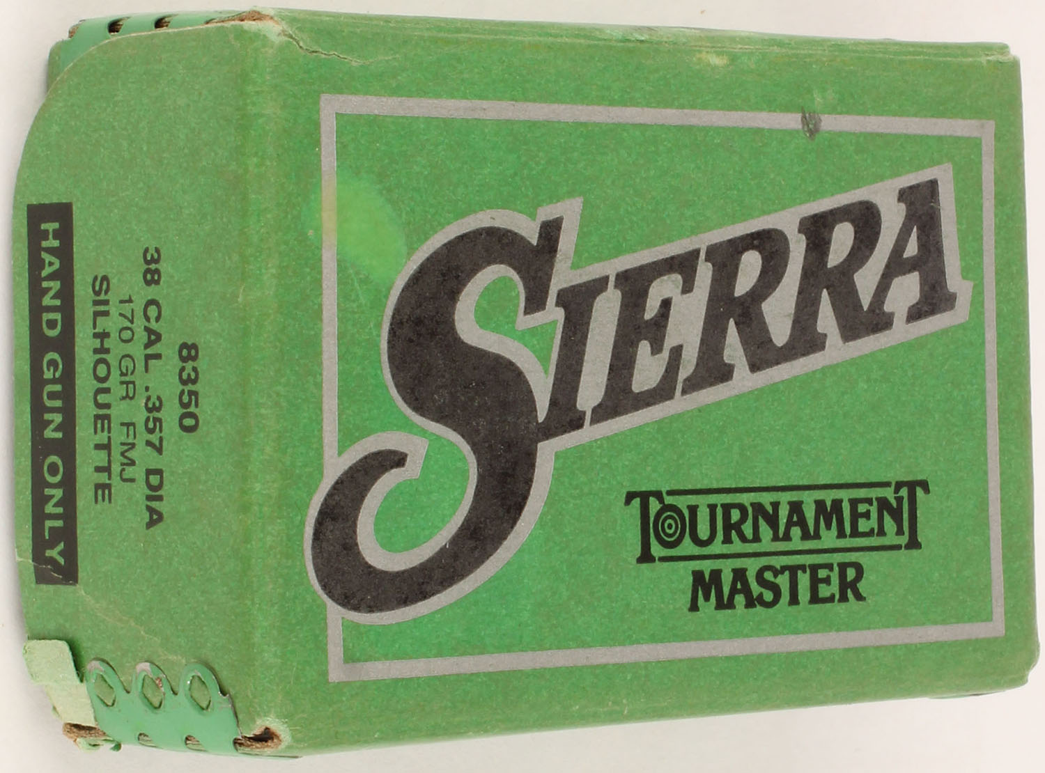 Sierra, Tournament Master, 38 Cal., 170 GR. FMJ Silhouette, Partial, 1pc., green box, box is solid with excellent color. Grade: Excellent - Value: 10 to 40