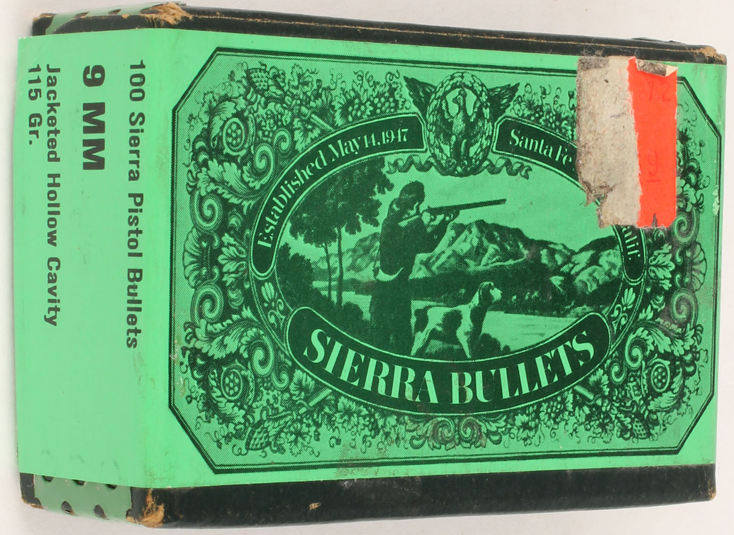Sierra with Inserts, 9mm, 115 GR. JHC, Partial, 1pc., green box, box is solid with excellent color. Grade: Excellent - Value: 10 to 40