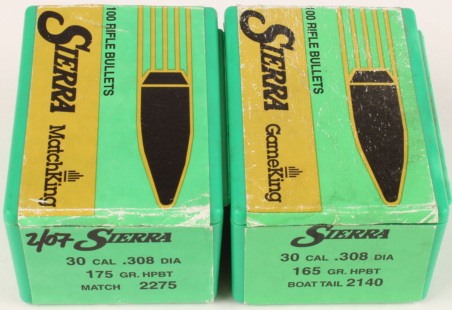 Sierra, GameKing/MatchKing, 30 Cal., 175/165 GR. HPBT, Full, 1pc., green box, box is solid with excellent color, bullets are excellent. Grade: Excellent - Value: 10 to 60