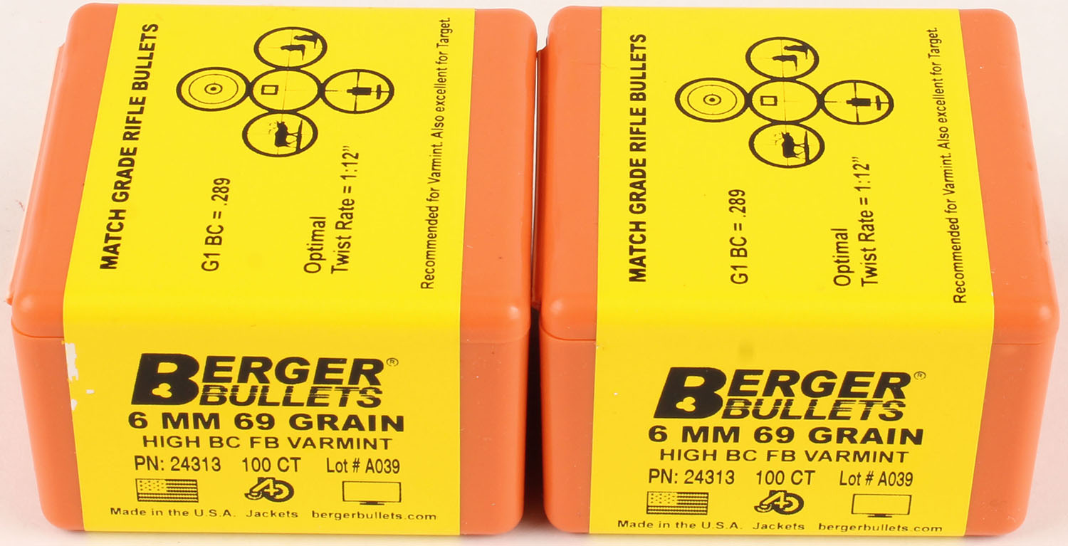 | Lot of 2 Berger, Match Grade Rifle Bullets, 6mm, 69 GR. High BC ...