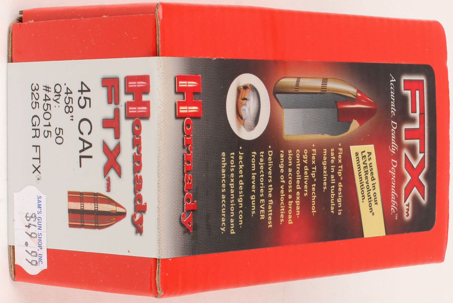 | Hornady, 45 Cal., 325 Grs. FTX, Full, 1pc., Multi-colored box, b...