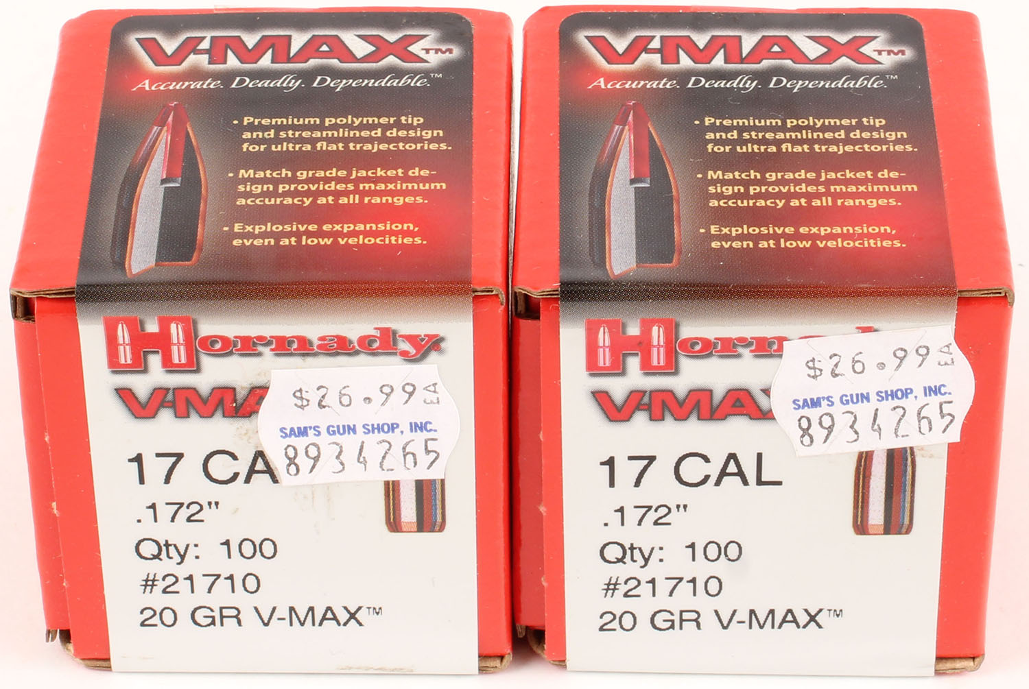 | Lot of 2 Hornady, 17 Cal., 20 Grs. V-Max, FULL & SEALED, 1pc., ...