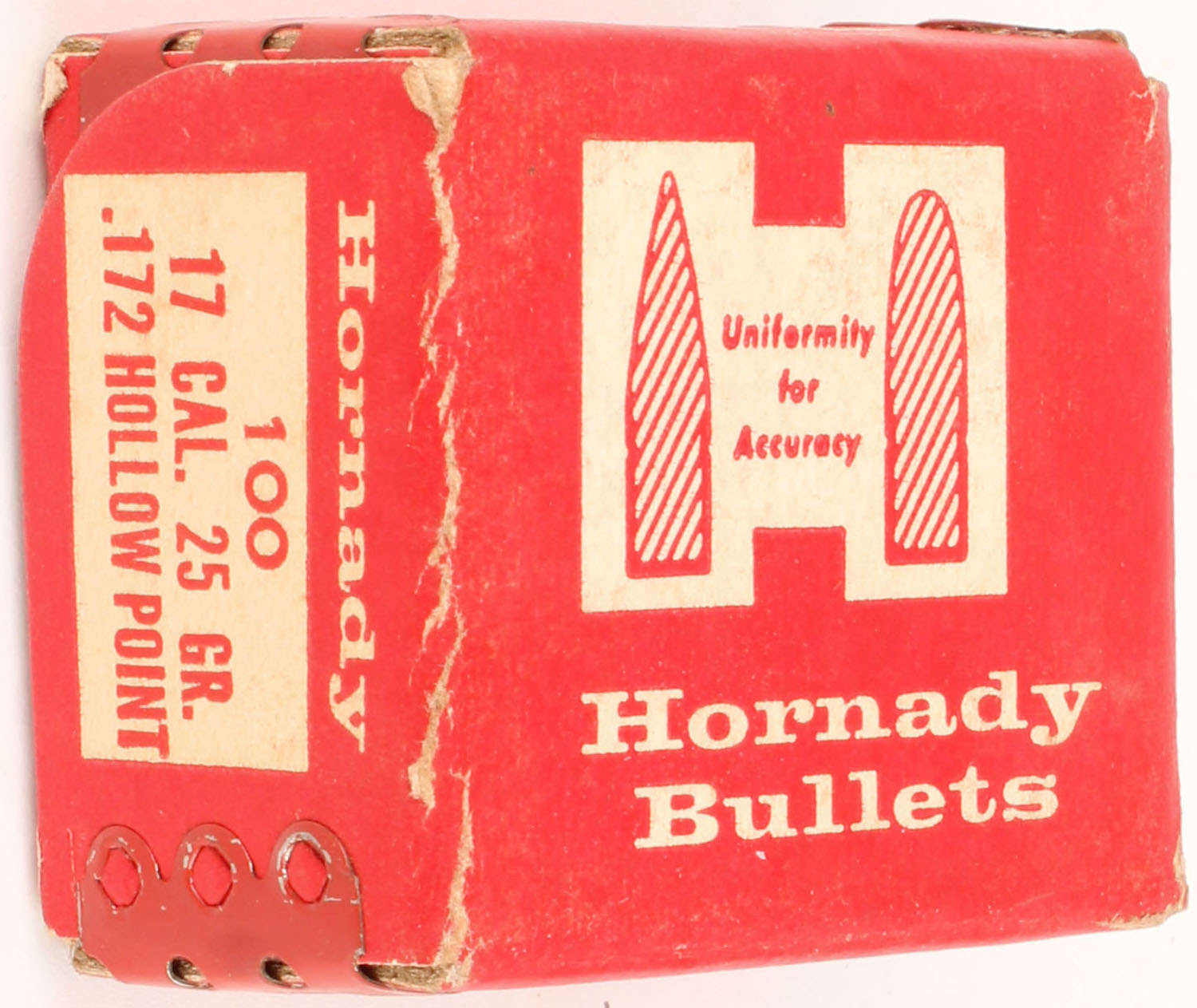 Hornady, 17 Cal., 25 Grs. HP, FULL & SEALED, 1pc., Multi-colored box, box is excellent with great color. Grade: Excellent - Value: 10 to 40