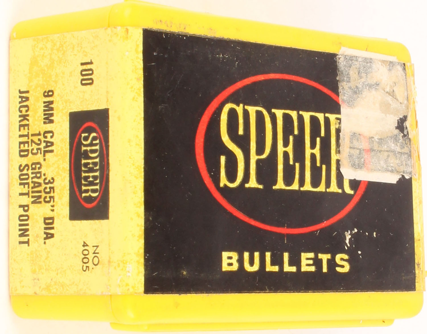 Speer, 9mm, 125 Grs. Jacketed SP, FULL & Half SEALED, 1pc., multi-colored box, box is solid with very nice colors, Bullets are excellent. Grade: Excellent + - Value: 10 to 40