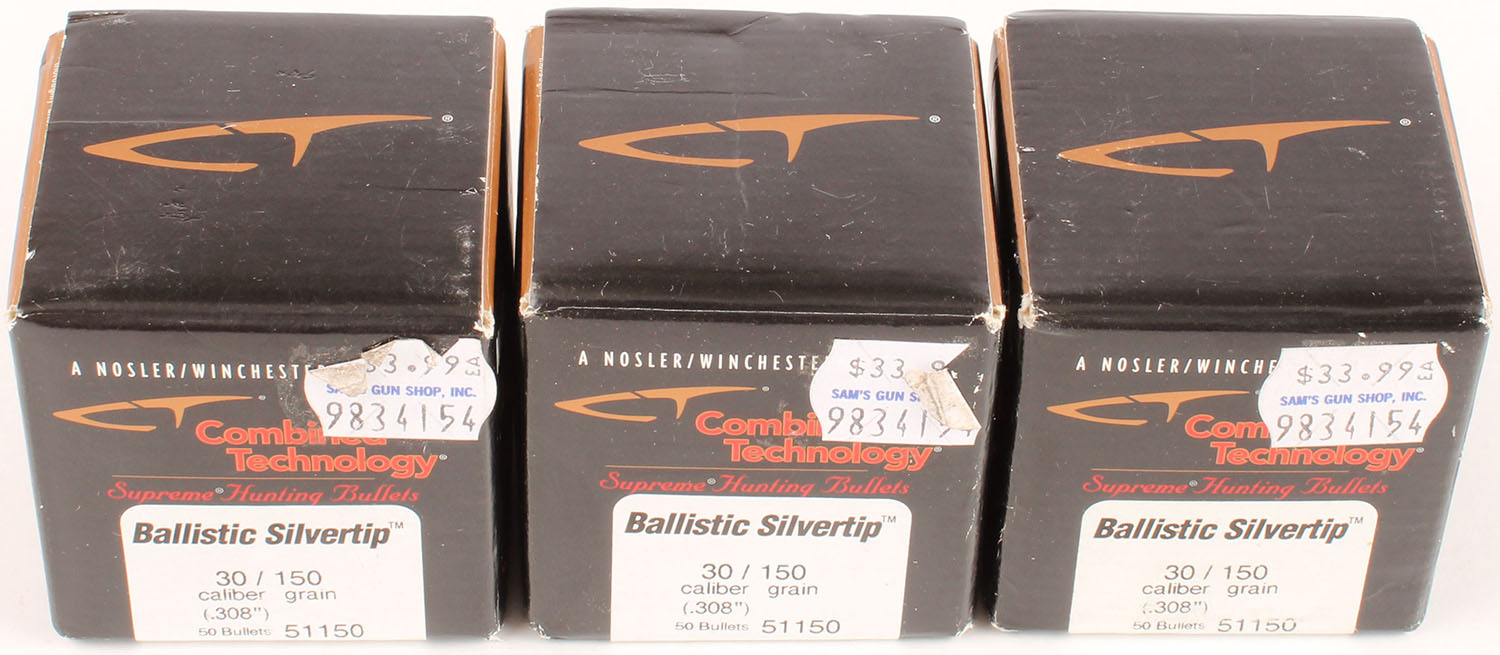 | Lot of 3 Nosler, 30 Cal., 150 Grs. SilverTip, FULL & SEALED, 1p...