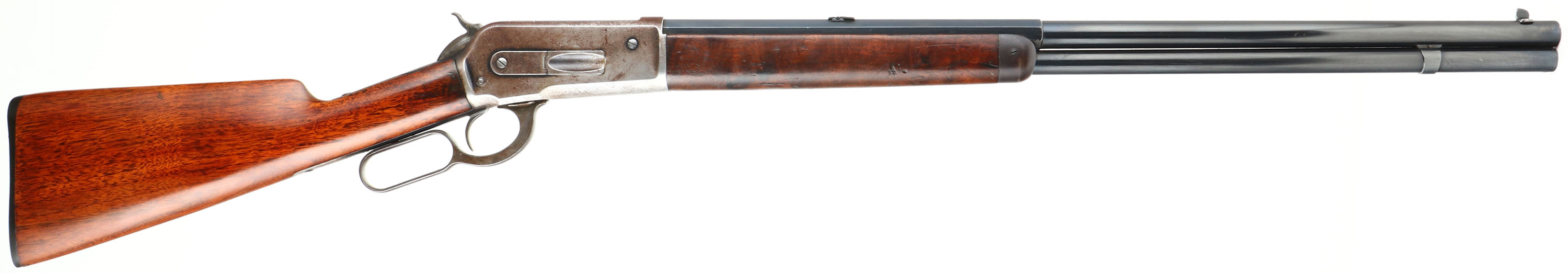 SPECIAL ORDER Winchester, Model 1886, (MATTED BARREL), CAL: 40-82 WCF, MFG: 1918, SN: 156140, Lever Action Rifle, 26'' Half octagon/half round barrel, Full mag. A special order rifle, with unique features. The orginal straight grip stocks are excellent. The stock has been lightly sanded & nicely refinished, with a couple of minor spot with filler, a very small toe chip that has also been filled & a tight repair at the top left corner of the wrist. The repairs & finish are all well done & give an overall excellent appearance. The original forend carries the original finish, with several minor contusions or scratches. The barrel is a special order having a rare full length matted top on the 1/2 octagon 1/2 round barrel. According to a 2007 WACA article on the subject, Winchester records indicate only 206 matted barrel 1886 rifles were produced in all calibers. The high luster metal blue finish on the barrel & mag has been nicely restored & rates 98%, with some light speckling under blue. The receiver, lever, hammer & forend cap are worn or faded mostly gun metal gray, with a thin layer of brown patina. The sliding bolt retains a 85% of its original bright blue. Fitted with a special order two leaf folding rear sight & a small blade front sight. Bore is excellent. Ordered with a Winchester hard rubber, widow's peak, shotgun buttplate. Comes with a Cody Winchester Factory Records Letter, which simply confirms no records for this rifle are available as the record is blank. This rare special order rifle, with a very nice overall appearance.* FFL or C&R Req. - Value: 6000 to 12000