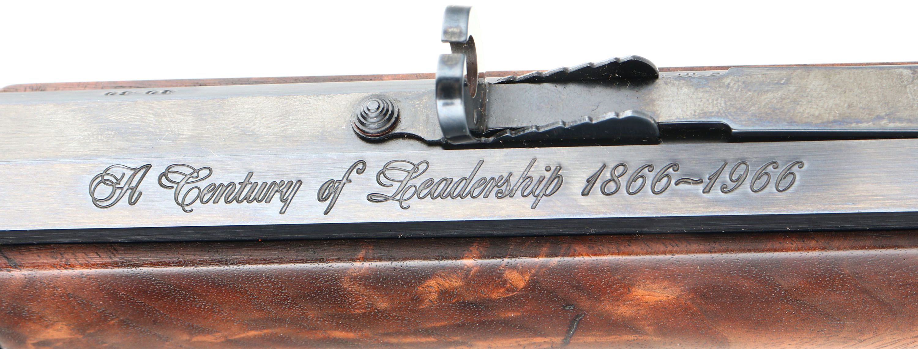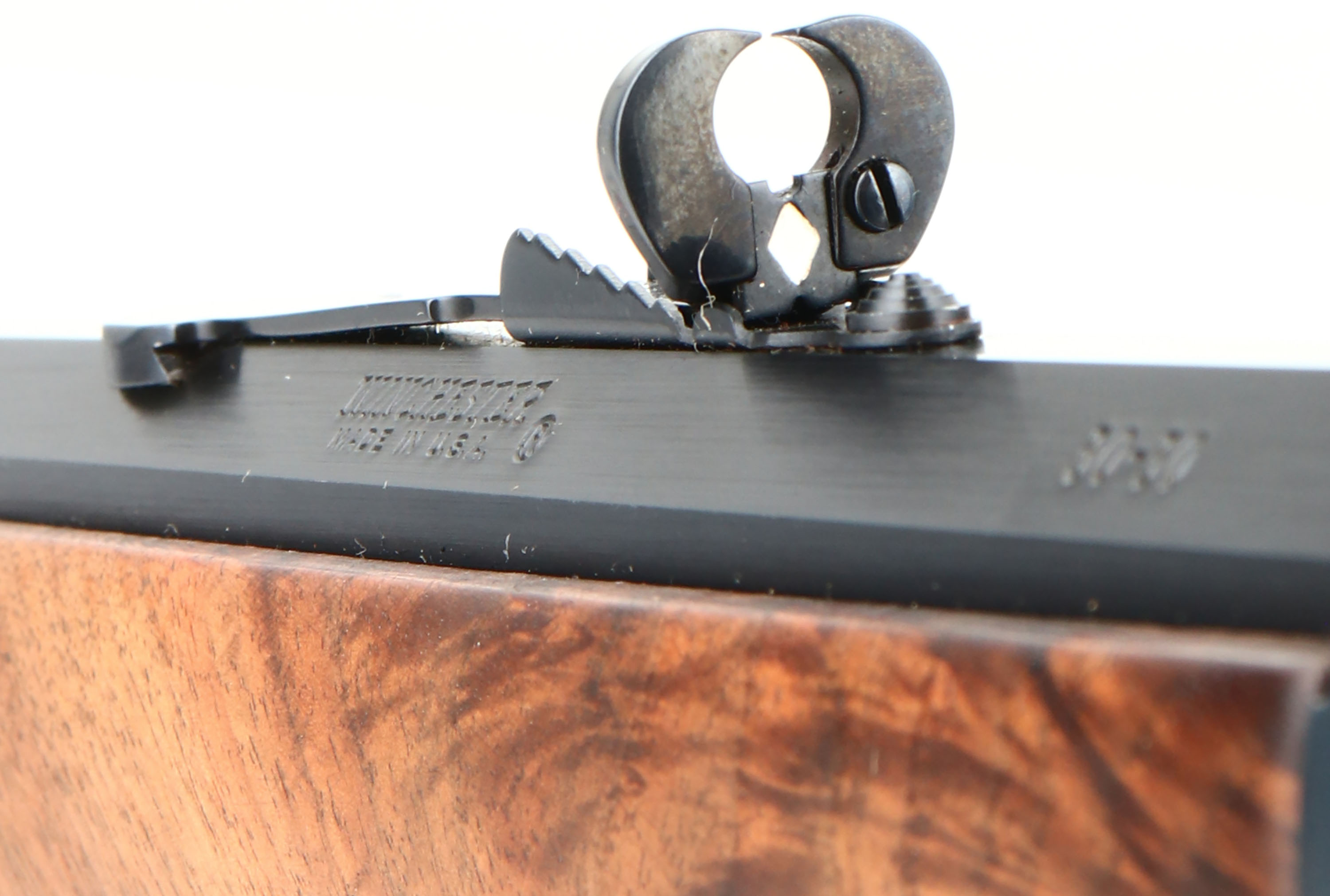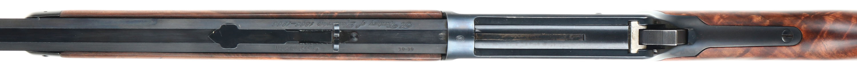 Winchester, Model 1894 Custom Built Rifle, marked 30-30, MFG: 1966, SN: 4515347, Lever Action Rifle, 26'' Octagon Barrel, Full mag. This rifle was built for the consignor utilizing a vintage 94 receiver & a Centennial barrel marked ''A Century of Leadership 1866-1966''. It features gorgeous rippled & flame grain deluxe quality walnut stocks. The stocks carry the original finish with no handling marks. The metal blue finishes are 98% on barrel & mag, 95% on receiver, with the lever, hammer & buttplate blued as well. Bore is excellent. Barrel fitted with a full buckhorn adjustable rear sight & white bead blade front sight. Metal crescent buttplate. Tight smooth action. A beautiful custom built Winchester 30-30 rifle & very popular in this caliber.* FFL Req. - Value: 2000 to 4000