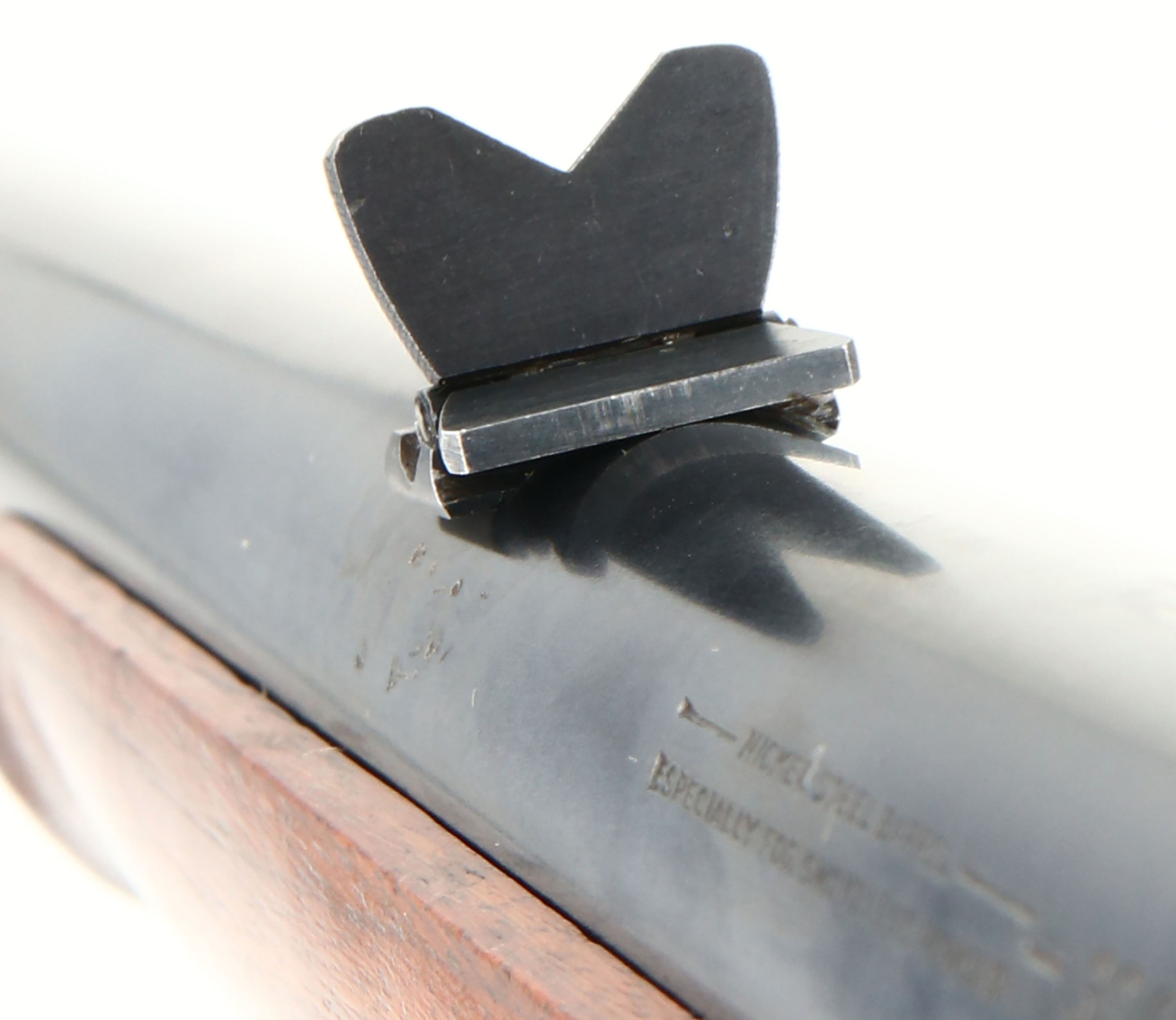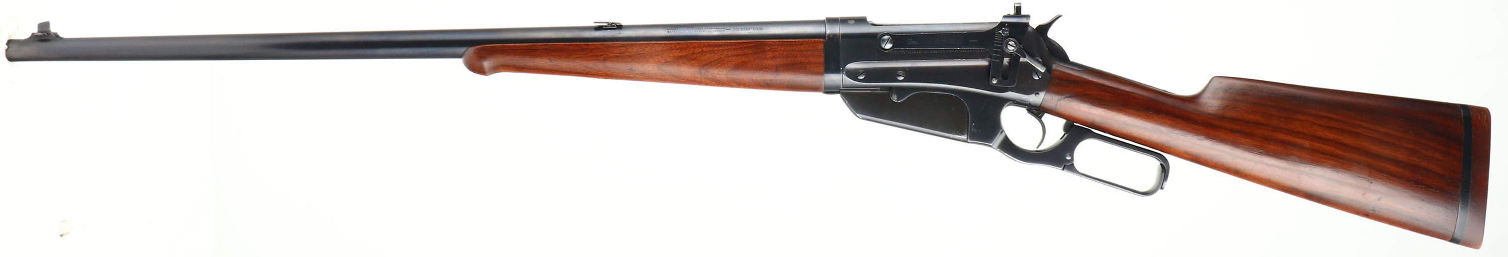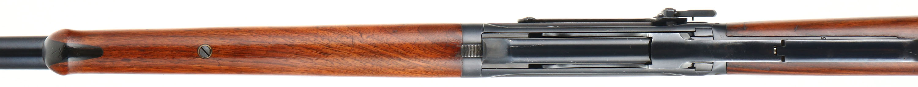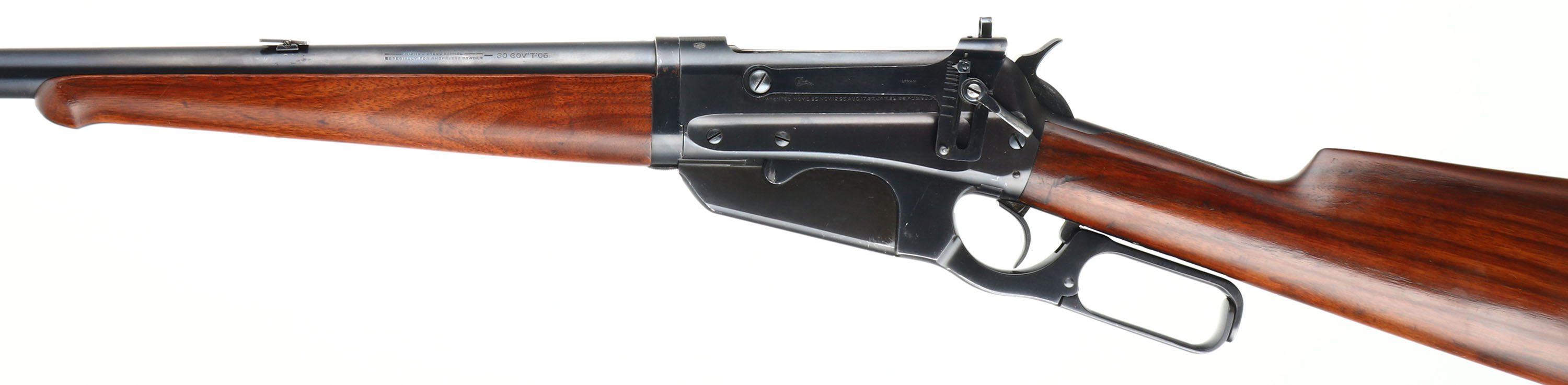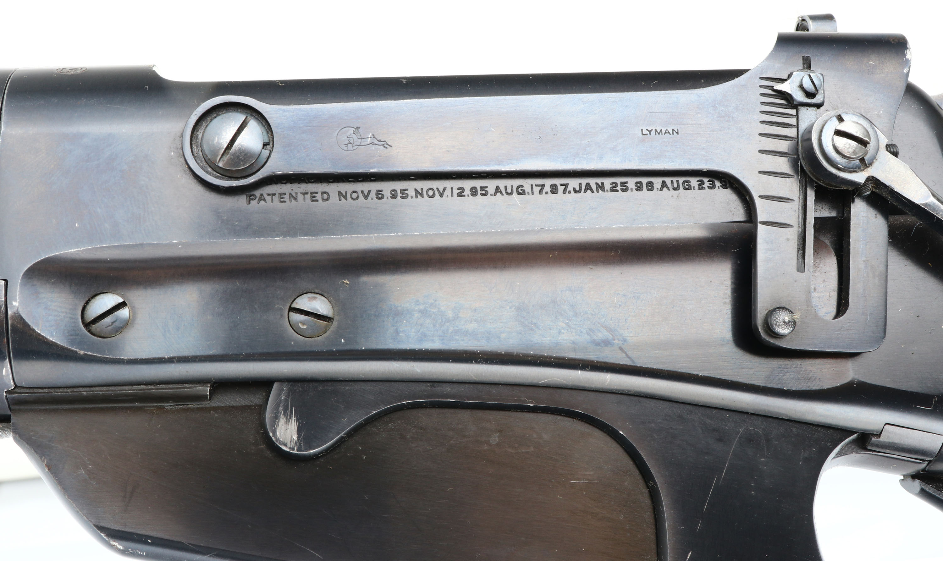 FANTASTIC Winchester Model 1895 Take-down, CAL: marked 30 GOV'T-06, MFG: 1922, SN: 415495, Lever Action Rifle, 23 7/8'' Tapered round barrel. The factory straight grip wood stock & schnabel forend, with the ebony inlay, are excellent. The finish is excellent, with very few minor handling marks. The original metal blue finish rates 99% on the barrel, 97% on the receiver lever & box mag. Top of receiver collar is factory matted. Bore is excellent & bright. The rifle is fitted with a Climbing Lyman #21 receiver sight, a dual leaf folding rear sight & a small blade front sight. Buttstock carries a correct period & possibly factory installed Winchester solid red recoil pad. An overall excellent & very collectible example.* FFL or C&R Req - Value: 5000 to 7000