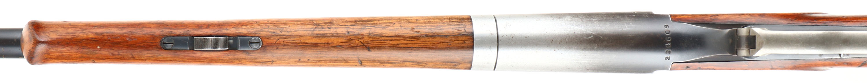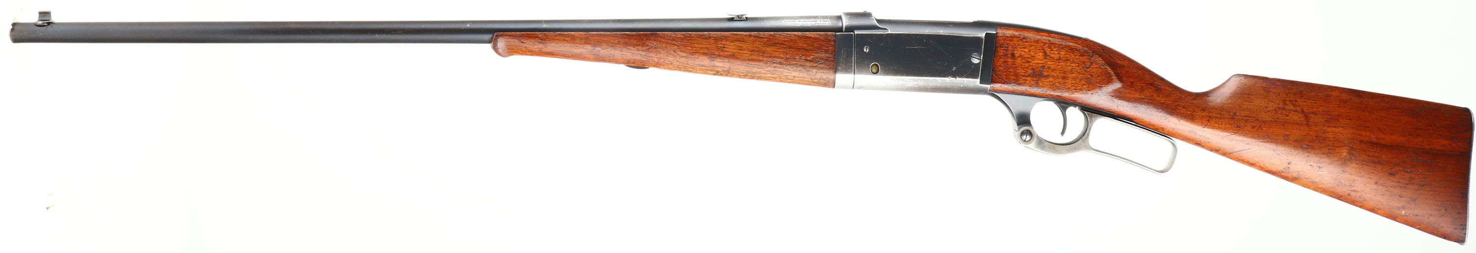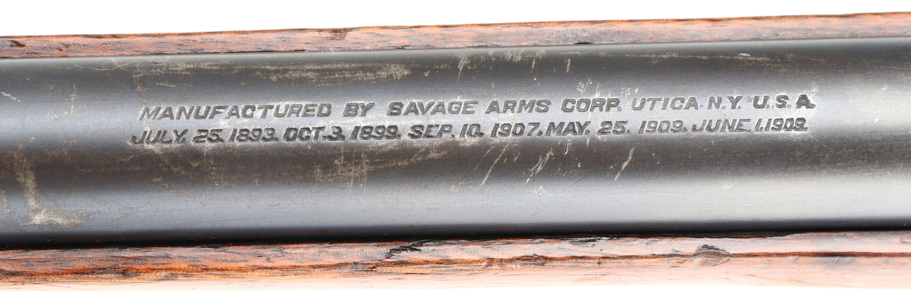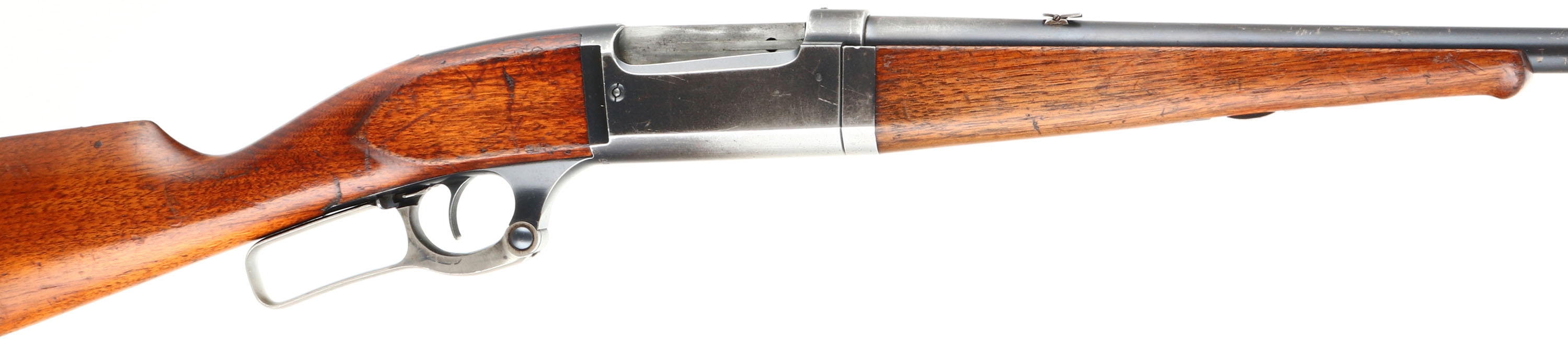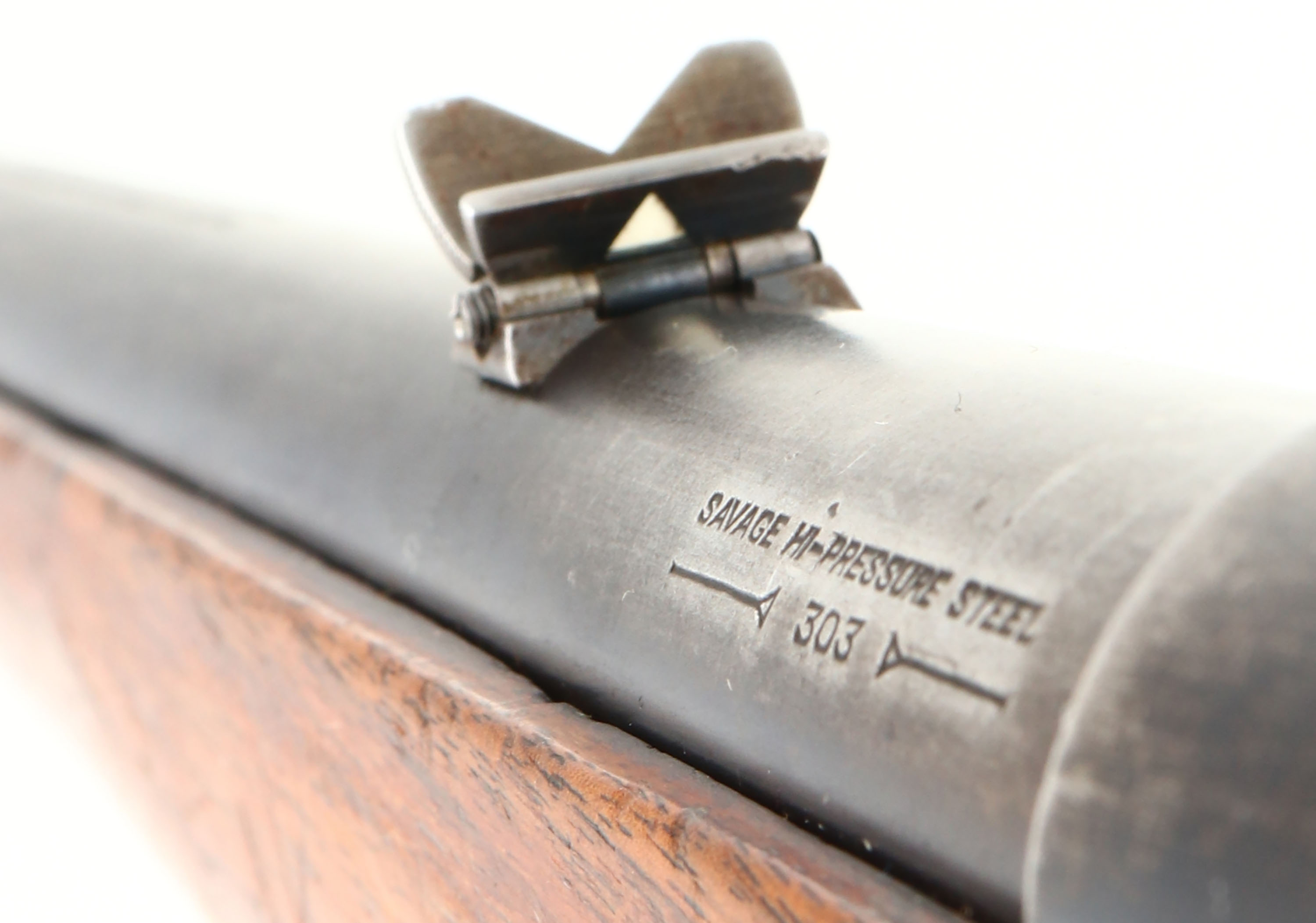 Savage, Model 1899, Take-down, marked 303 Cal., MFG: 1921, SN: 234609, Lever Action Rifle, 26'' Tapered round barrel. The factory straight grip wood stock & schnabel forend are very good & solid, with numerous small handling marks, scratches & contusions to the original finish. There is a small chip at the toe. The original blue finish rates 75% on the barrel, 60% on receiver, with most wear found on the belly. The lever displays faint remains of case-coloring. The stock carries the original Savage serrated metal buttplate. Barrel fitted with a two leaf folding rear & tall blade front sights. Bore is very good. Top of receiver carries 4 filler screws from previous scope mounting. Action is smooth & tight. Nice overall appearance. FFL or C&R Req. - Value: 600 to 1200