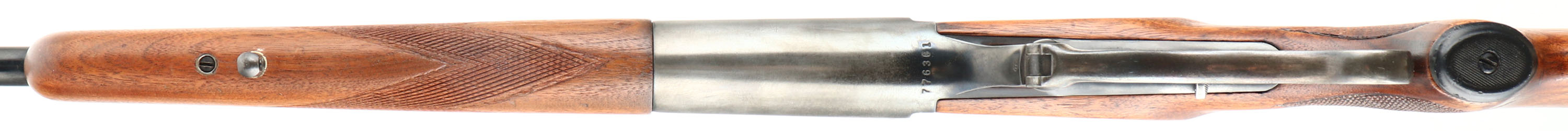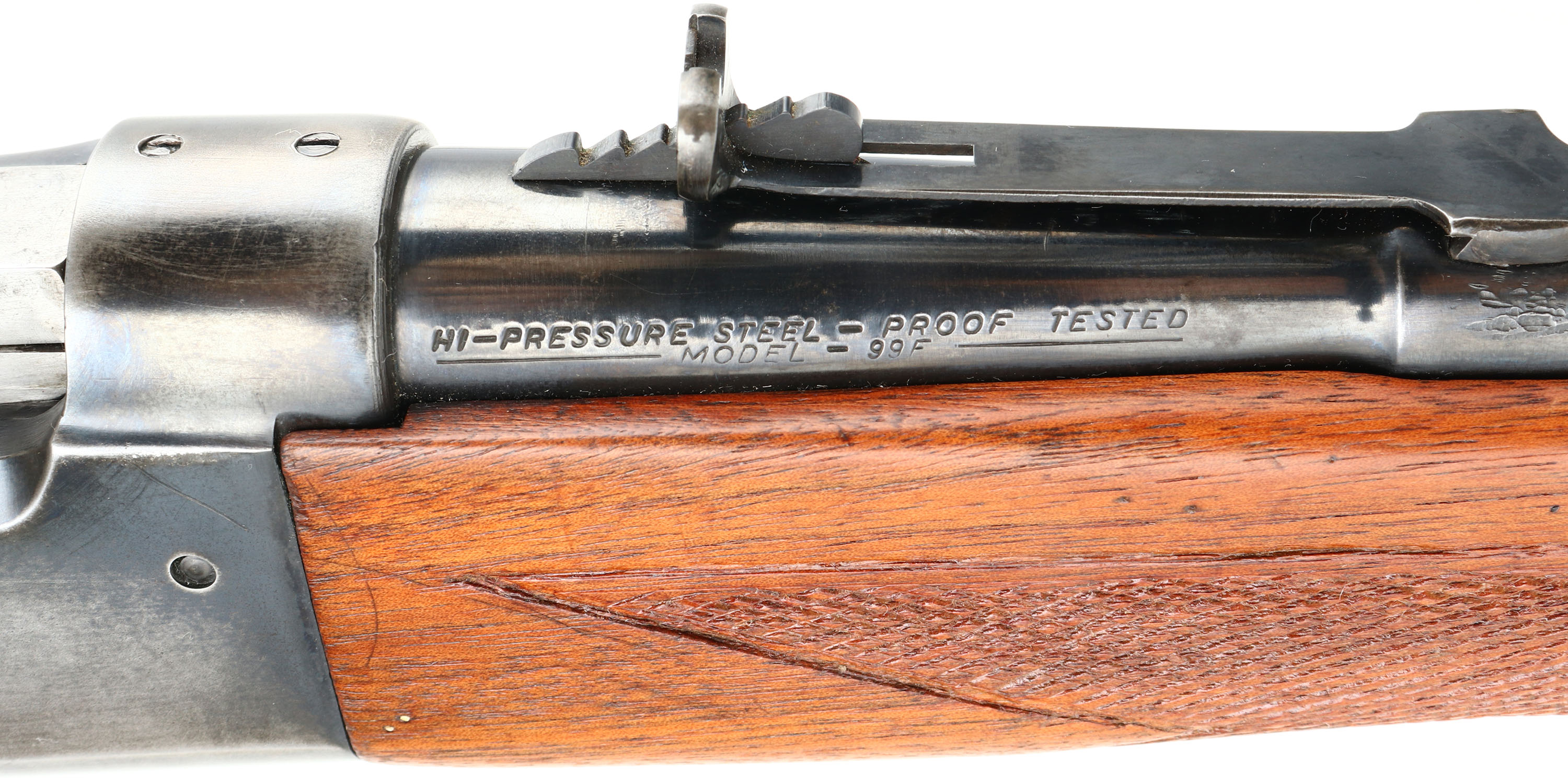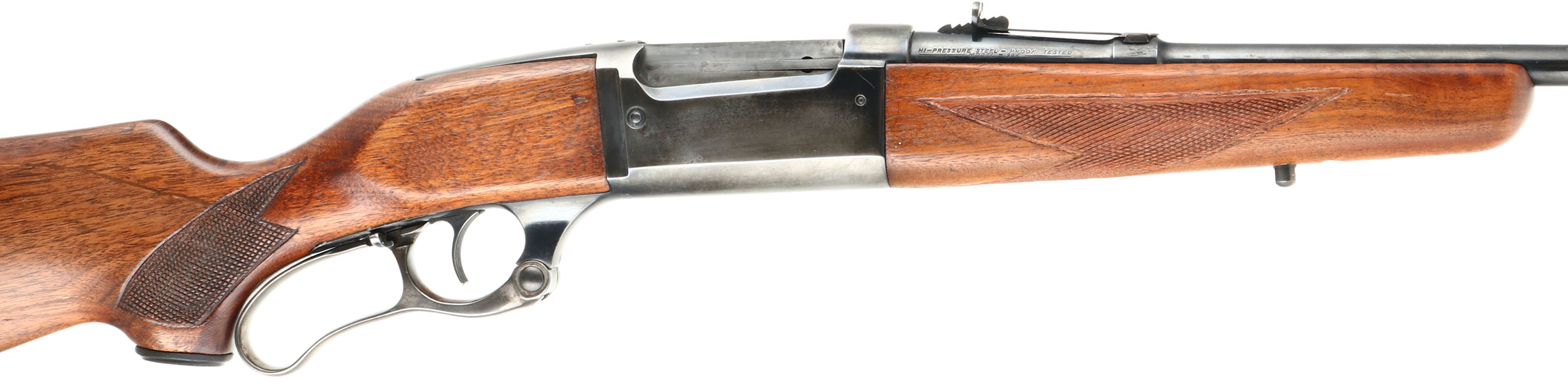 Savage, Model 99, CAL: 250-3000, MFG: 1956, SN: 776361, Lever Action Rifle, 22'' round barrel. The original checkered & capped pistol grip wood stocks are very good & solid, despite large crack repairs & having been sanded & refinished. The stock has a 9'' tight crack repair that runs from the toe to the pistol grip on the right side & another tight 4'' crack repair from comb through to the checkering in the wood. After the repairs, the stock was thinned & reshaped along the belly & comb, especially to the right side. It was then sanded & nicely refinished. There are very few handling marks remaining to the current finish & overall appearance is excellent. The metal blue finish is a combination of original finish & applied finish, with 95% coverage on the barrel, 50% on the receiver. The case-hardened lever has faded mostly gun metal gray. Bore is excellent. The barrel holds an adjustable rear sight & ramp elevated blade front sight. Grooved metal buttplate. Sling studs. Great overall appearance. FFL or C&R Req. - Value: 300 to 600