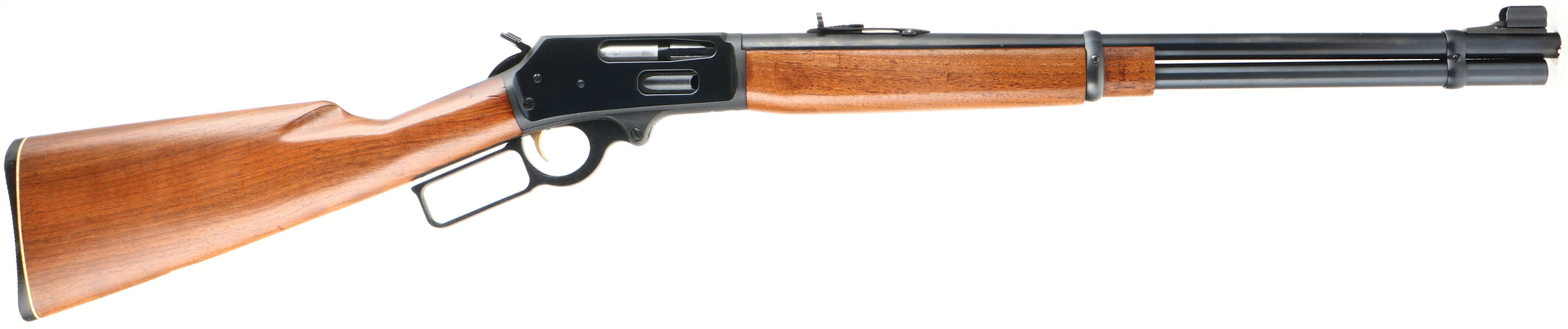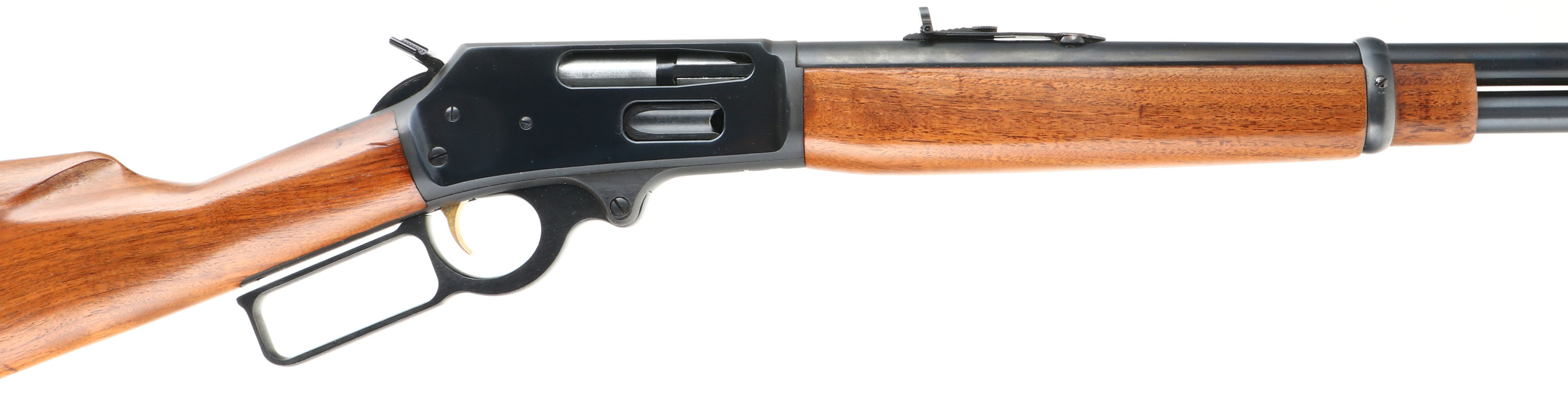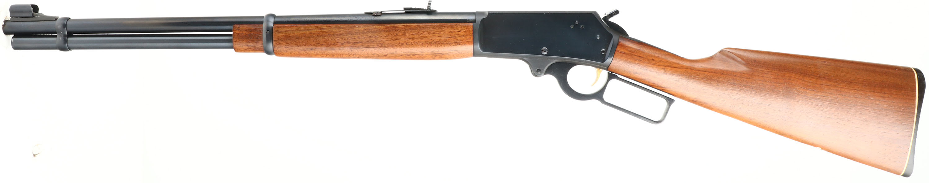 Marlin, Model 336, CAL: 30-30, MFG:1975, SN: 25085426, Lever Action Rifle, 20'' barrel, Full Mag. The smooth & straight grip wood stocks are excellent, with very few tiny handling marks to the original finish. The metal blue finish rates 99% overall. Bore is excellent, with strong rifling. The barrel carries the original adjustable rear & ramp elevated hooded front sights. Receiver is factory tapped & drilled for potential scope mounts. Stock carries a Marlin checkered plastic buttplate. Factory trademark bullseye in belly of the stock. Gold tone trigger. An excellent lever action hunting rifle. FFL Req. - Value: 400 to 800
