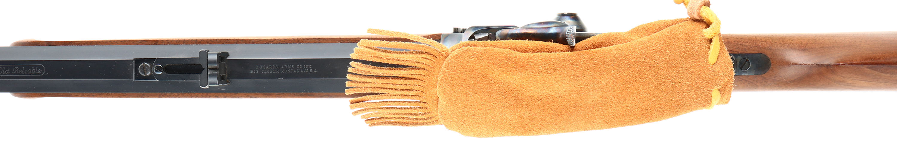 C. Sharps Arms Co, Model 1874, CAL: marked .40 2 1/10, MFG: Modern, SN: 74-911, Lever Action Falling Block Rifle, 30'' Octagon barrel. From C.Sharps Arms Co: ''Arguably the most famous single shot rifle of the American West, the 1874 Sharps falling block rifle story began in 1848 when Christian Sharps patented his first breech-loading rifle & carbine design using paper cartridges ignited by a separate musket cap. Throughout the 1850s & 60s, the Sharps breech-loading rifle became popular with military & civilian users alike. As metallic cartridges were developed & became available the venerable breech-loading Sharps was a perfect candidate for conversion to the metallic cartridges of the time. Many of the Civil War Era Sharps rifles & carbines were converted to early metallic cartridges. The 1874 Model was introduced by the Sharps Rifle Co. as the first purpose-built rifle to house the new breed of powerful metallic cartridges. It quickly showed itself as being a rugged & reliable rifle perfectly suited to the rigors of the frontier. This reputation led to the 1874s nickname & C. Sharps Rifle Co. Inc. trademark of ''Old Reliable''. The C. Sharps Arms Co. Inc. continues the legacy of the original C. Sharps & Co. & Sharps Rifle Co. by building heirloom quality reproductions of the Sharps 1874 rifles like the rifle offered in this lot. The original straight grip wood stocks, with schnabel forend, are excellent. There are minor contusions & handling marks to the original finish. The factory metal blue finish on the barrel rates 99%. The receiver, hammer & lever are case-hardened, retaining vivid case-colors. Bore is excellent. Fitted with a factory long range rear tang sight, while the barrel carries a full buckhorn/sliding ladder rear sight & globe front sight. The front sight can be modified with different reticles. Stock carries a case-colored checkered metal buttplate. This is a fabulous & beautifully made, high quality reproduction of an original 1874 Sharps rifle. FFL Req. - Value: 3000 to 4000