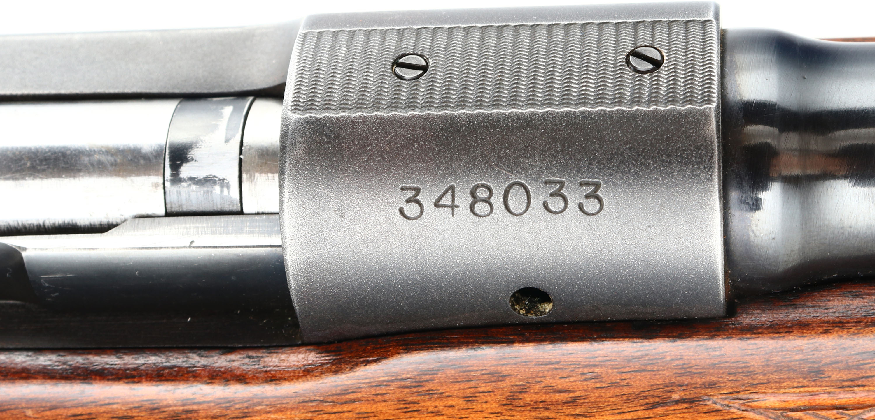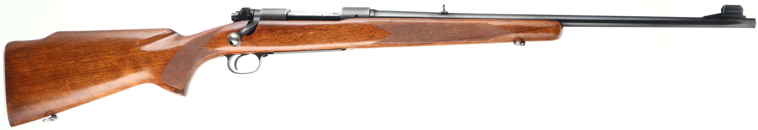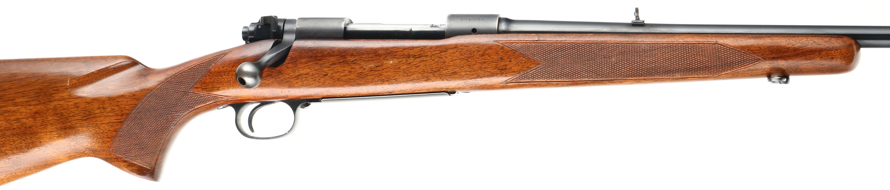 Winchester, Model 70 Featherweight, CAL: 270 WIN, MFG: 1955, SN: 348033, Bolt Action Rifle, 22'' barrel. The original checkered & flat pistol grip Monte Carlo wood stock is excellent & solid. The original finish has minor scrapes, scuffs & scratches. The original metal blue finish on the barrel rates 98%, 95% matte finish on receiver, with minor scuffs. Bore is excellent & bright, with sharp rifling. The receiver is factory tapped & drilled, for potential scope mounting. The barrel holds a single leaf folding rear sight & ramp elevated hooded blade front sight. Stock carries a checkered metal buttplate. Factory sling loops. A desirable Pre-64 featherweight Mod 70 in a popular deer hunting caliber. FFL or C&R Req. - Value: 1200 to 2500