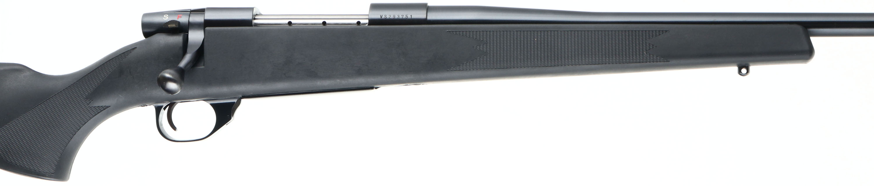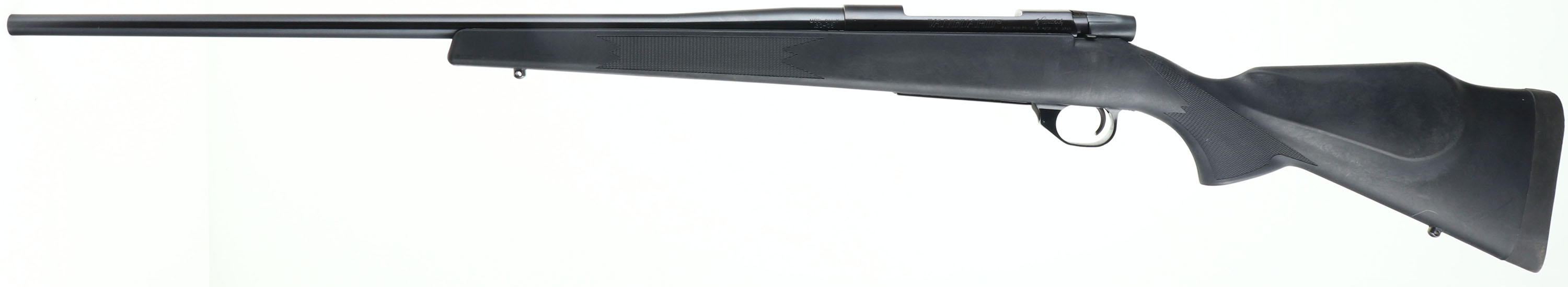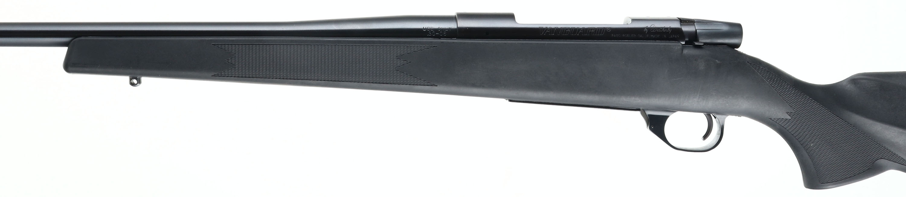 BOXED, Weatherby Vanguard, CAL: 30-06, MFG: Modern, SN: VS293751, Bolt Action Rifle, 24'' barrel. The Monte Carlo style, raised cheek & flat pistol grip synthetic stock is excellent. The metal blue finish rates 99% overall. Bore is excellent. The receiver is factory tapped & drilled for the mounting of a scope. No open sight provisions. Buttstock carries a factory solid black rubber recoil pad. Sling studs. Comes in original box, with owner's manual. FFL Req. - Value: 500 to 800