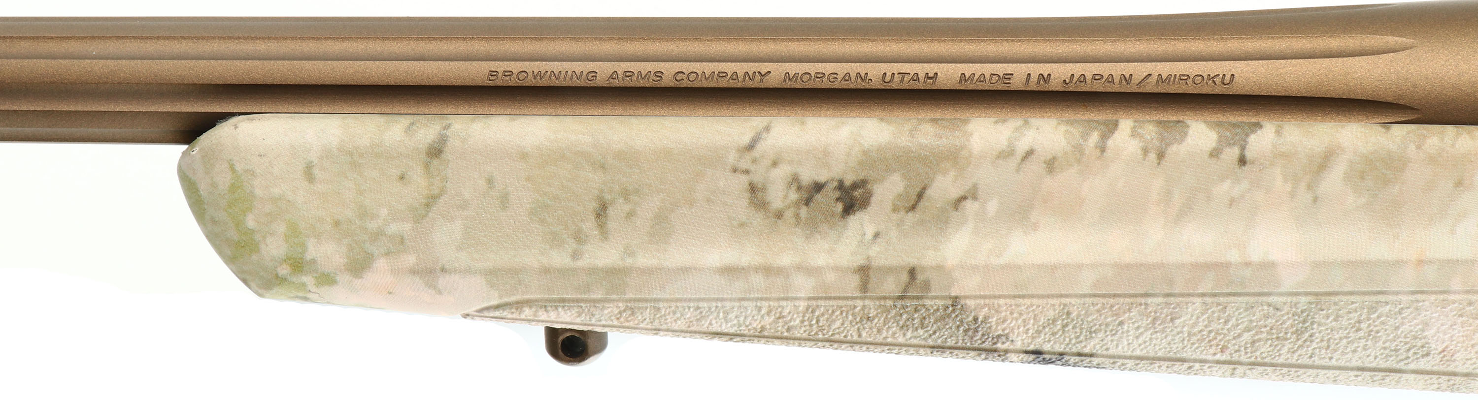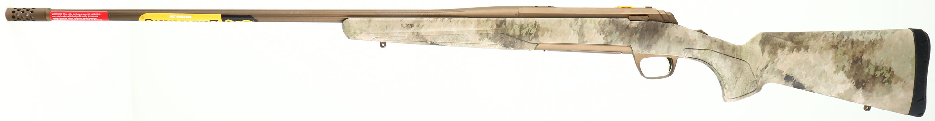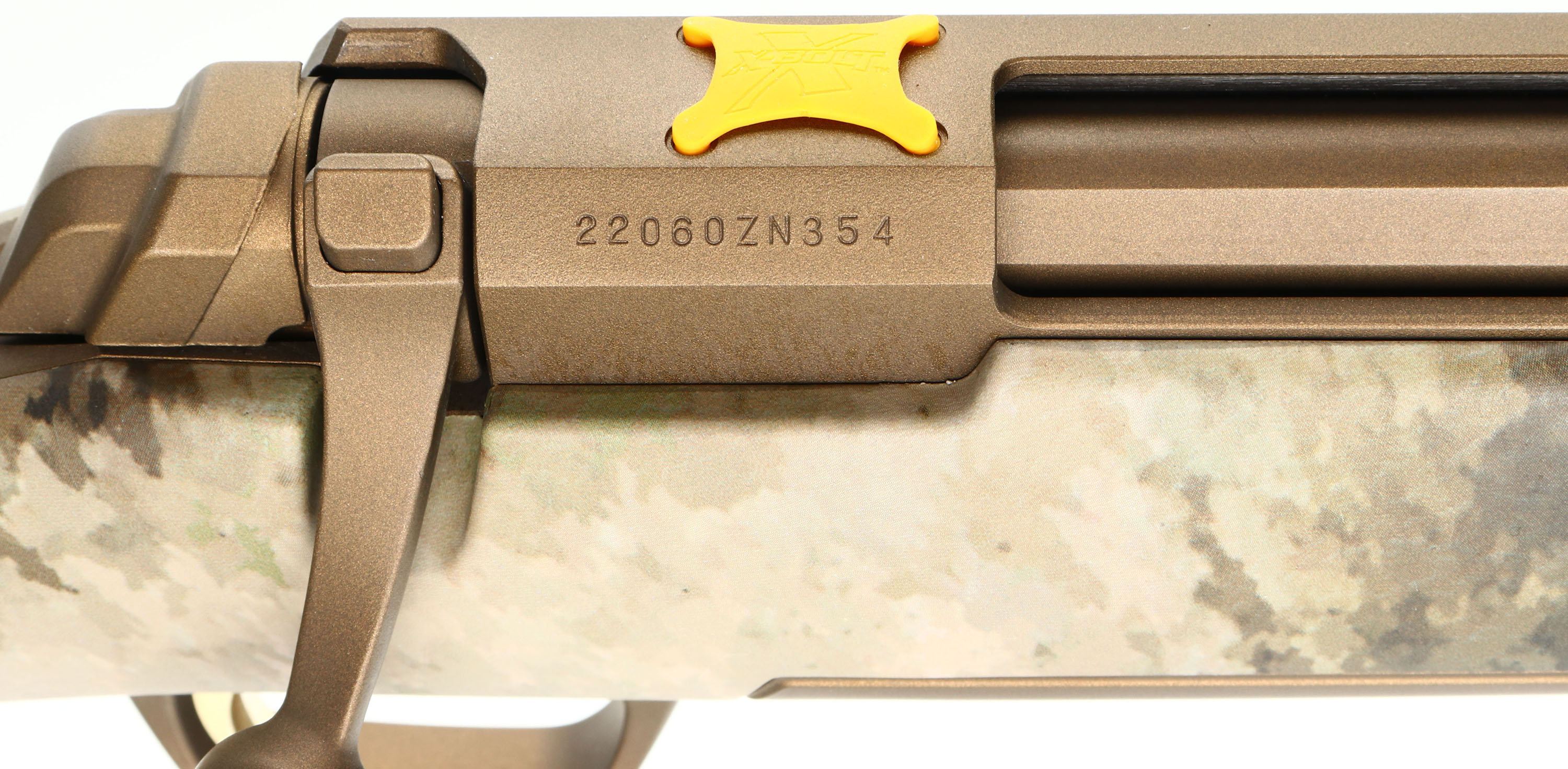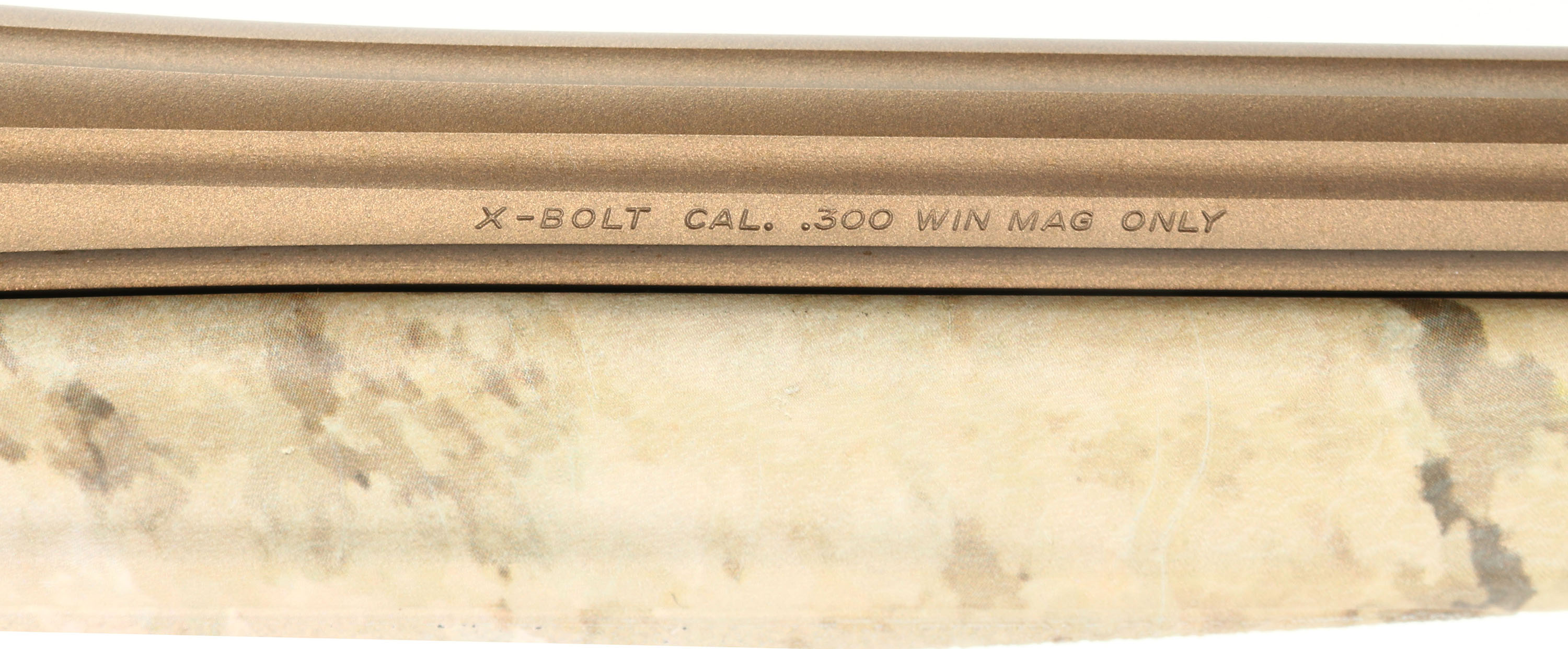 BOXED Browning, X-Bolt Hell's Canyon, CAL: 300 WIN MAG., MFG: Modern, SN: 22060ZN354, Bolt Action Rifle, 26'' Tapered & flouted bronze barrel, with muzzle brake. The original Hells Canyon camo & pistol grip synthetic stock is mint. The original bronze tone metal finish is 100%. Bore is mint. The top of the receiver is factory drilled for a scope mount, No provision for open sights. Sling studs. Factory solid recoil pad. Comes in original label matching box, with owner's manual, lock & instruction manual. A fabulous sporting rifle in NIB condition. FFL Req. - Value: 1000 to 2000