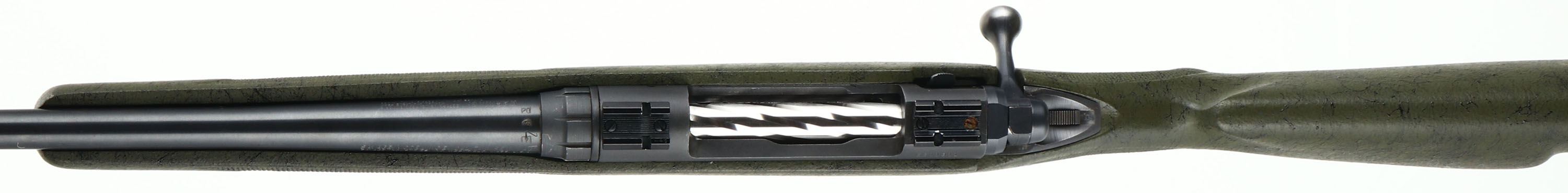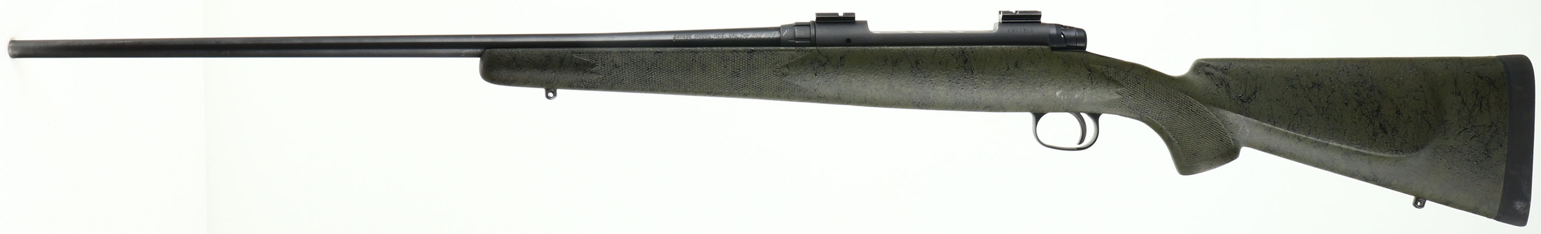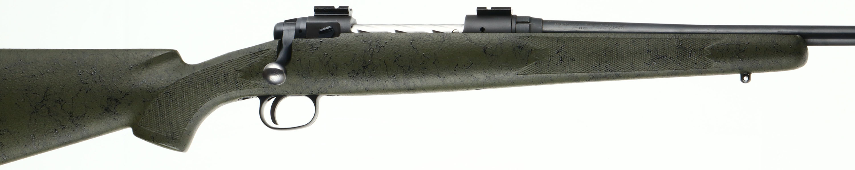 Savage, Model 110E, CAL: 7mm Rem Mag, MFG: Modern, SN: E811311, Bolt Action Rifle, 24'' Tapered barrel. The original & unique green, & black speckled, checkered & flat pistol grip synthetic stock is basically mint. The original metal blue finish rates 99%. Bore is excellent. The receiver holds two scope mounting blocks & no open sight provisions on the barrel. Stock carries a solid recoil pad. Twist pattern bolt. Sling studs. An almost new condition rugged & all-weather hunting rifle. FFL Req. - Value: 400 to 650