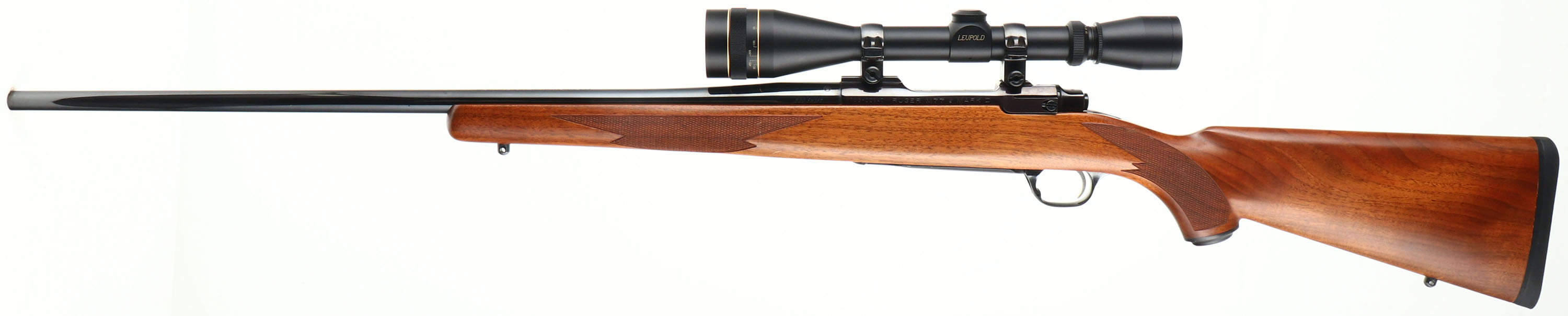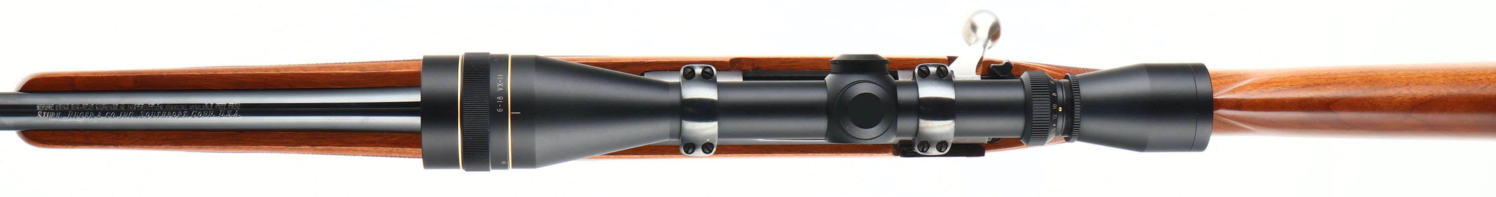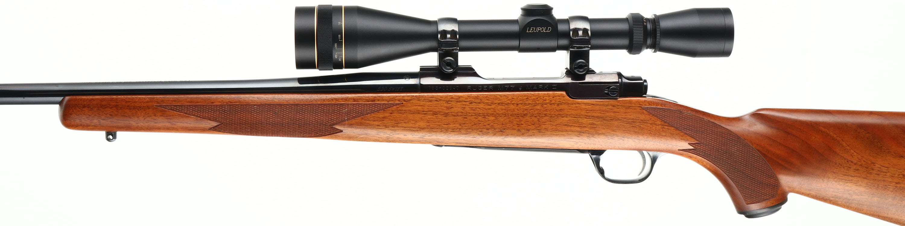 Ruger, M77 Mark II, CAL: 220 SWIFT, MFG: Modern, SN: 788-02947, Bolt Action Rifle, 24'' barrel. The original checkered & capped pistol grip wood stock is excellent. There are only a couple minor storage or handling marks to the original finish. The metal blue finish rates 99% overall. The receiver is beginning to tone plum. Bore is near mint. The receiver carries a Leupold VX-II 6-18 scope. No open sight provisions. Sling studs. Stock has factory Ruger solid recoil pad. The perfect varmint hunting rifle. FFL Req. - Value: 1000 to 2000