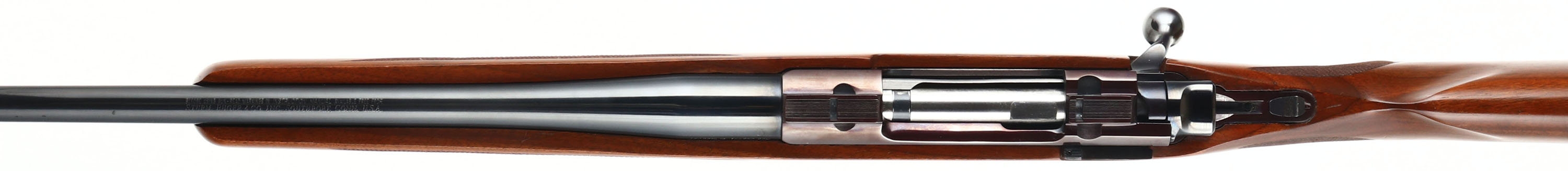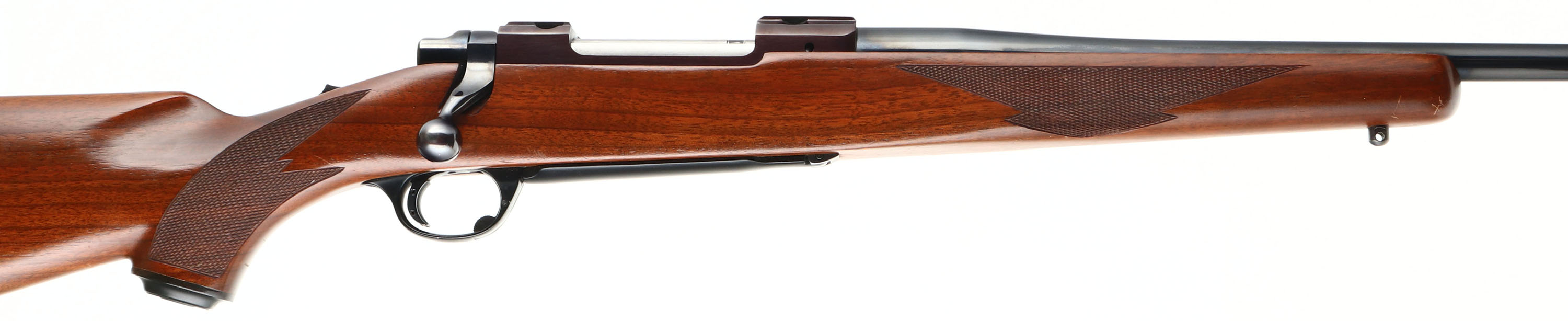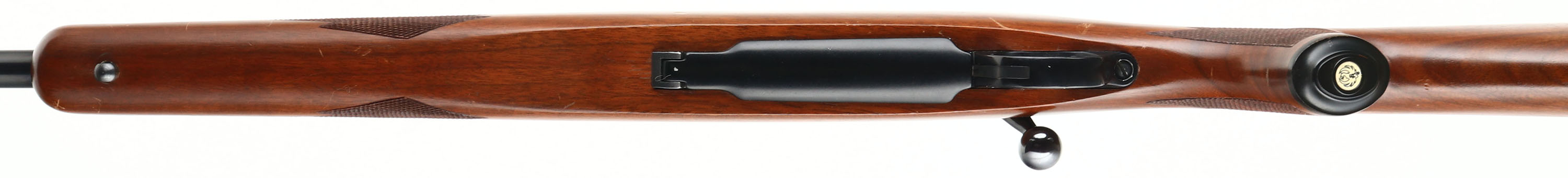 UNCOMMON, Ruger, Model M77, RARE CAL MARKING: 280 Rem or 7mm Exp. Rem, MFG: 1981, SN: 74-89154, Bolt Action Rifle, 22'' barrel. The original checkered & capped pistol grip wood stock is excellent. There are some minor scrapes & dings to the original finish. The original metal blue finish rates 98% overall. The receiver finish has typically toned plum. Bore is excellent. No open sight provisions. The receiver has integrated scope ring slots. Sling studs. Stock has factory Ruger solid recoil pad. Uncommon dual caliber marked barrel. The .280 Remington cartridge is also known as 7mm-06 & 7mm Express Remington. Remington renamed the .280 cartridge in late 1978 to 7mm-06 Remington, but just before the end of the year they renamed it again to 7mm Express in an attempt to increase sales. This change resulted in people confusing 7mm-06 with the 7mm Remington Magnum, and Remington changed the name back to .280 in 1981. With the ammo manufactured under several names, after Remington flip-flopped on the name, Ruger wanted the owner to know ammo marked either way was ok to use, hence the dual caliber marking. FFL Req. - Value: 700 to 1200