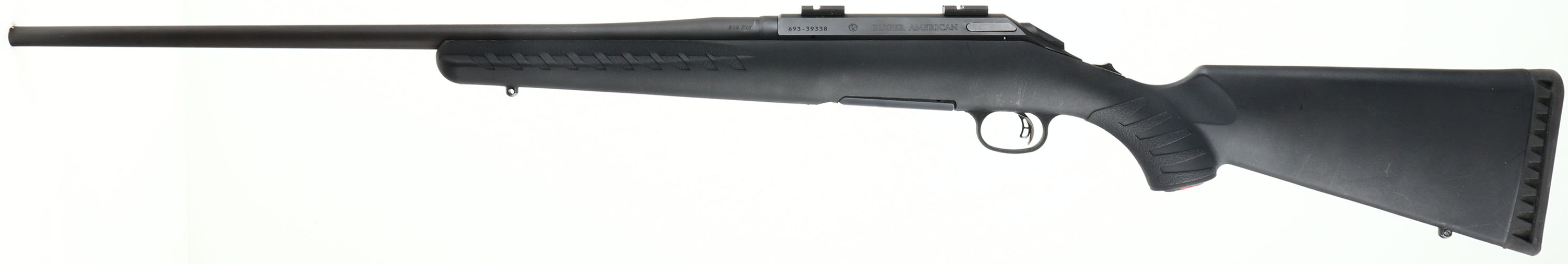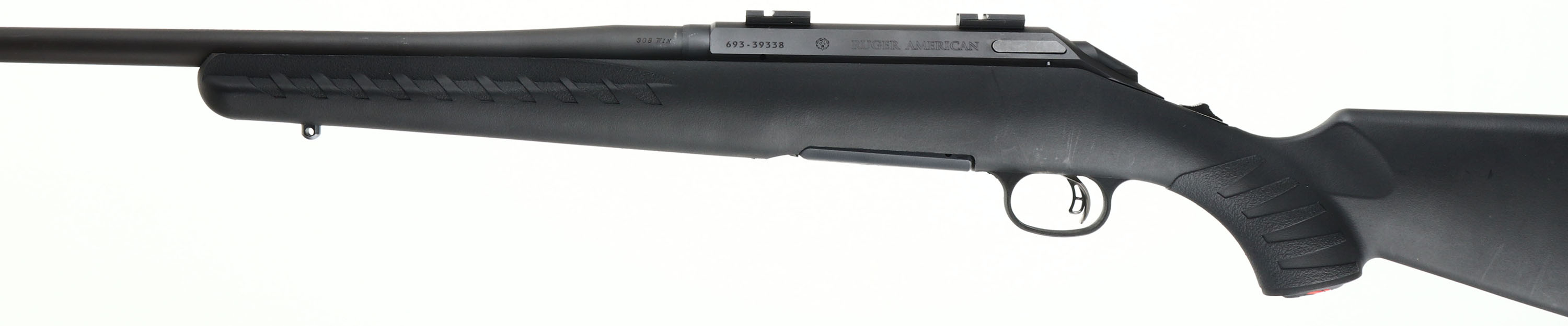 Ruger, Model American, CAL: .308 WIN, MFG: Modern, SN: 693-39338, Bolt Action Rifle, 22'' barrel. The original flat pistol grip & ergonomic lightweight synthetic stock is excellent, with very few minor handling rubs. The original metal flat black finish rates 99%. Bore is excellent. The receiver holds two factory scope mounting blocks & no open sight provisions on the barrel. Stock carries the factory recoil pad. Sling studs. 4 rounds, Detachable mag. Tang safety. Comes out of a gun store's inventory & basically in nearly new condition. FFL Req. - Value: 300 to 500