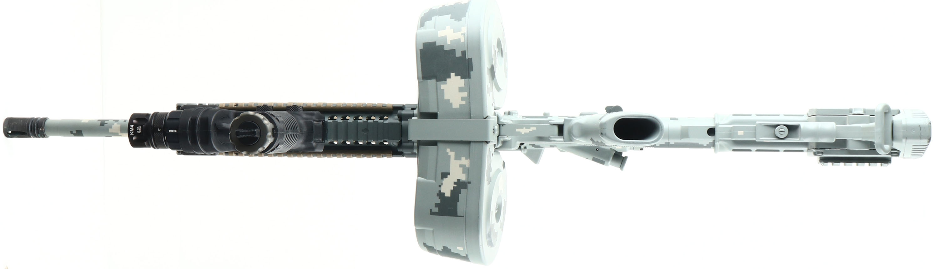 Rock River, LAR-15, CAL: 5.56, MFG: Modern, SN: CM159423, Semi Auto Rifle, 16 1/2'' barrel. The synthetic 6-pt adjustable stock & checkered grip are excellent. The digital camo finish rates 98% overall, with minor handling marks. Bore is excellent. Factory iron sights. The forend is a quad picatinny rail, with rubber inserts on (3) faces & the bottom rail holds a SureFire KM4 tactical flashlight, with white or infrared tactical light. It has a self-locking bezel selector ring to switch between the types of light. C-Mag Twin Drum 100 rnd mag. FFL Req. - Value: 600 to 1100
