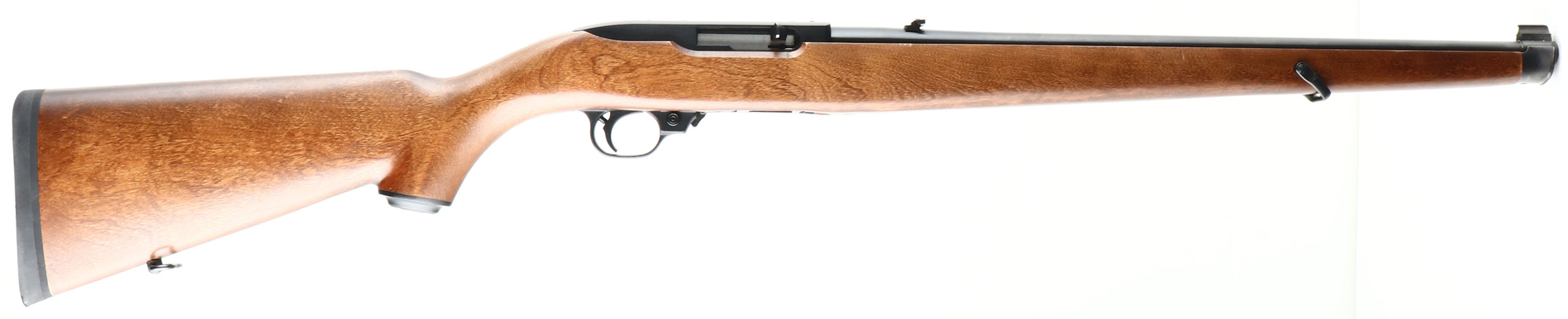 Ruger, Model 10/22 Carbine, CAL: 22 LR, MFG: 1994, SN: 240-28016, Semi Auto Rifle, 18 1/2'' barrel. The capped pistol grip full length wood stock is excellent. The metal blue finish on the barrel rates 99%+. The matte black finish on the receiver & trigger guard rates 99%+. Bore is excellent & minty. The barrel holds a standard folding leaf rear sight & blade front sight. Stock has sling loops & a Ruger solid black rubber recoil pad. FFL Req. - Value: 300 to 500