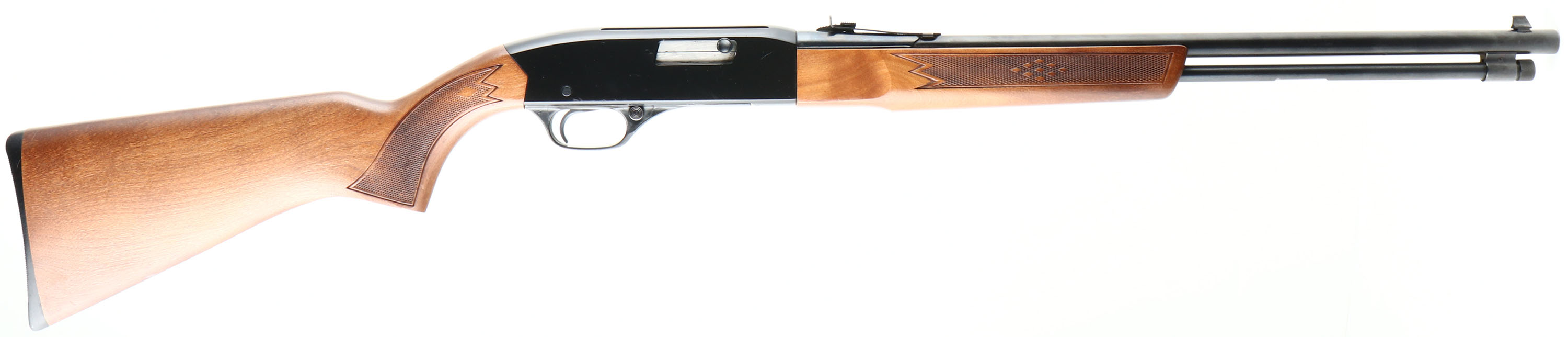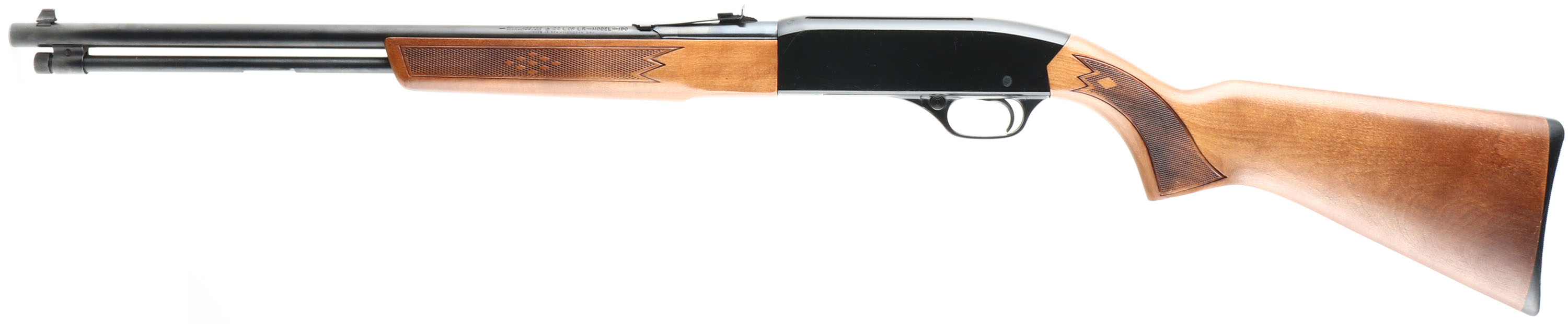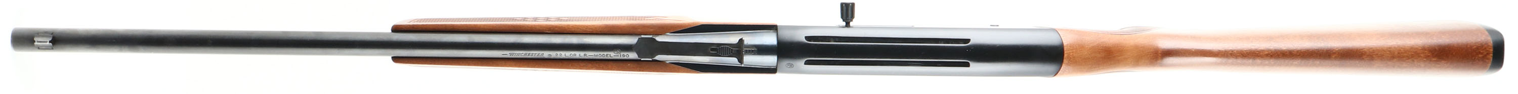 Winchester, Model 190, CAL: 22 S.L.LR, MFG: 1975-77, SN: B2093359, Semi Auto Rifle, 20'' barrel. The original checkered flat pistol grip stock is excellent. There are minor handling & storage marks to the finish. The metal blue finish on the barrel & tube rates 99%. The Japan black finish on the receiver rates 97%, with light scuffs/scrapes. Bore is excellent. Factory sights. Stock carries a Winchester grooved plastic buttplate. FFL Req. - Value: 150 to 250
