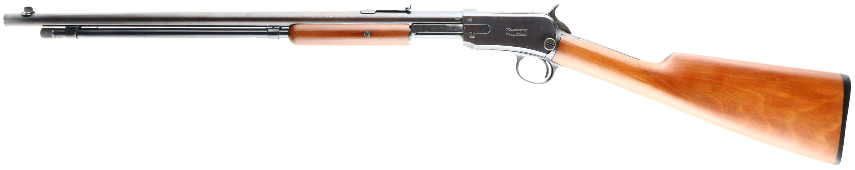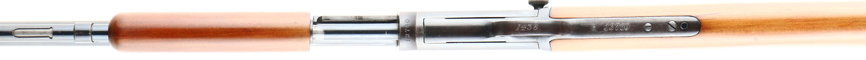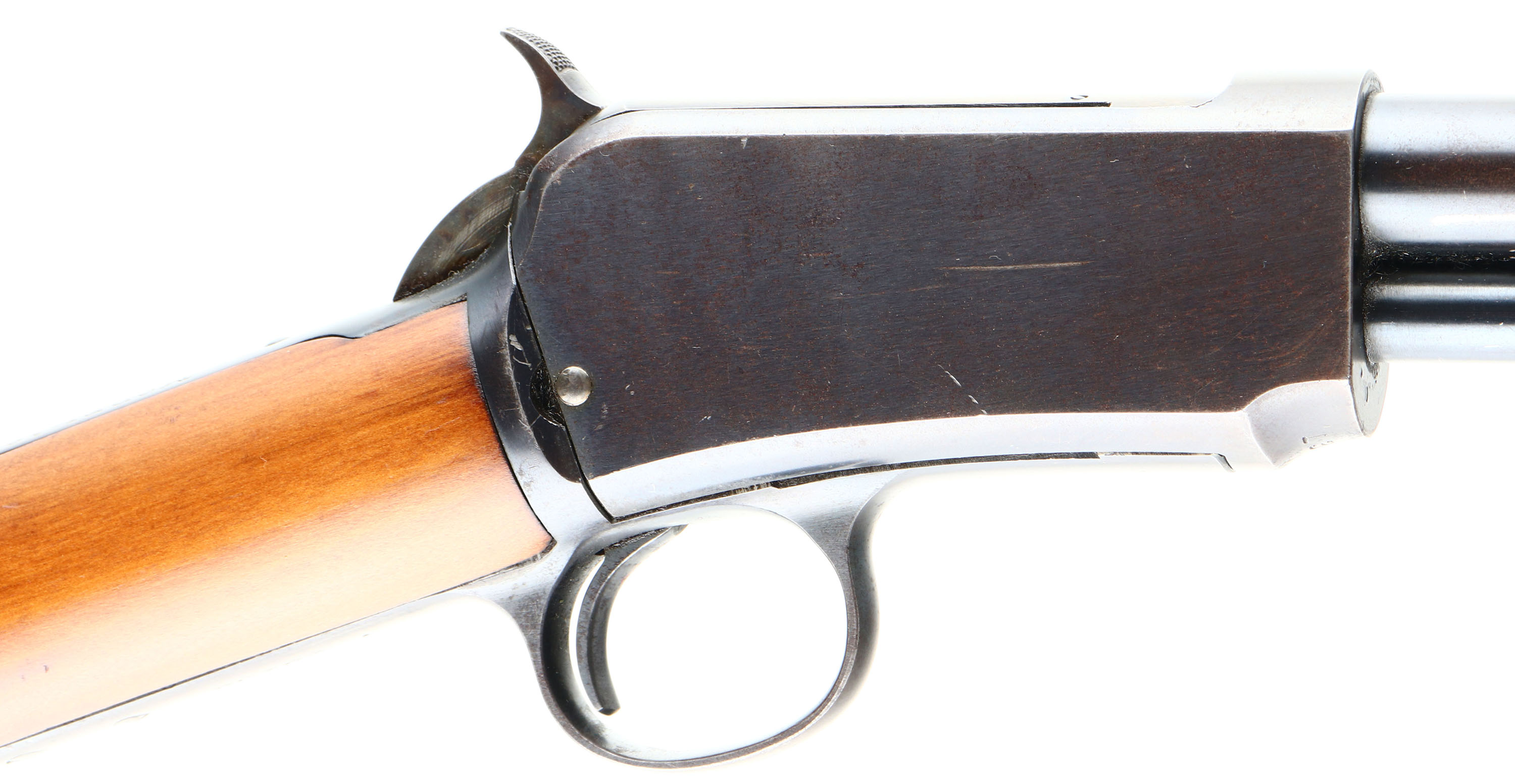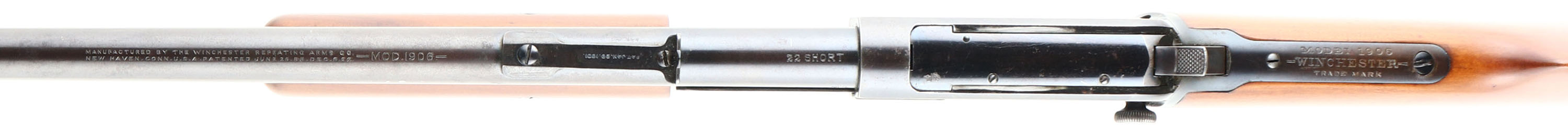 UNIQUE Winchester, Model 1906 , .22 SHORT., MFG: 1906, SN: 13760, Pump Action Rifle, 20'' Round barrel, This is a first year rifle, with British proof stampings on the barrel, bolt & receiver. It also carries the professional engraving of ''WILKINSON PALL MALL'' on the left side of the receiver. The original straight grip wood stocks are excellent. The forearm is the smooth style. The original finish is excellent, with virtually no rubs or handling marks. The original metal blue finish rates 85% overall, despite full coverage simply due to some thinning loss & barrel starting to tone slightly brown. Bore is good, but with areas of worn roughness amongst good rifling. Fitted with standard barrel sights. Winchester plastic buttplate, with engraved screws. Another truly excellent, original & collectible condition example. FFL or C&R Req. - Value: 2000 to 3000