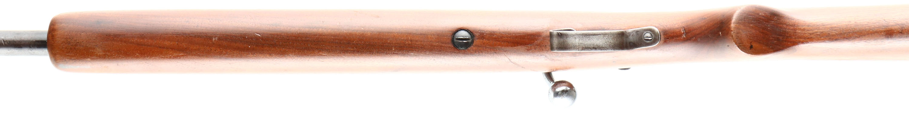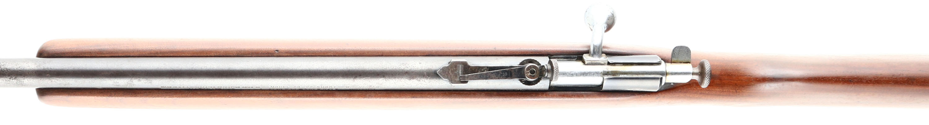 Winchester, Model 68, Marked .22 SHORT, LONG & LONG RIFLE Cal., MFG. 1934-46 SN: None, Take-down, Bolt Action, Single shot rifle, 27'' round barrel, The original flat pistol grip wood stock is excellent, after having been lightly sanded & refinished with some small scuffs, scrapes & contusions. Metal blue finish is a mix of original finish, with added finish & lots of cleaned pitting on the barrel. Bore is very good & bright. The rifle is fitted with the correct Winchester wheel adjusting, aperture receiver sight & ramp hooded blade front sight. Buttstock carries a Winchester checkered plastic buttplate, with a small edge chip.. A good looking example of a model 68. FFL or C&R - Value: 200 to 400