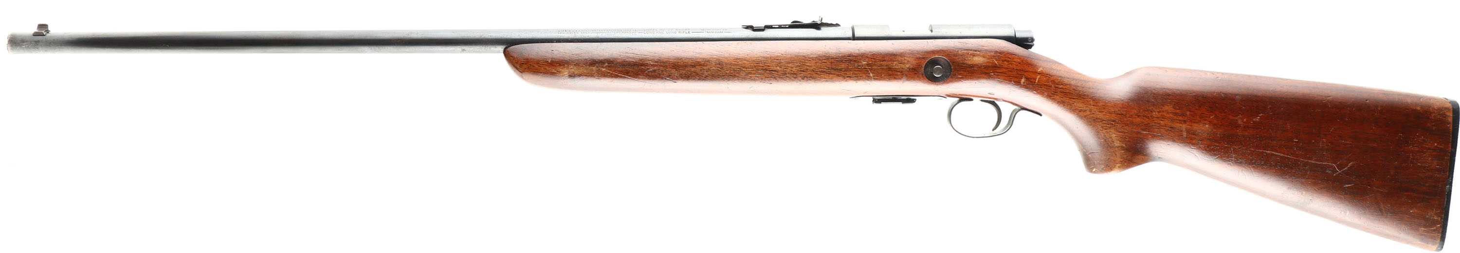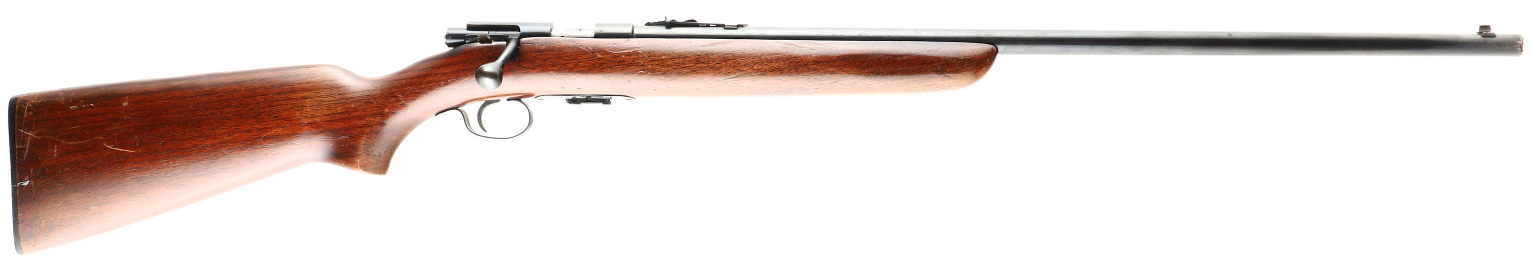 Winchester, Model 69, CAL: 22 S,L, & LR, MFG: 1935-63, SN: NONE, Bolt Action Rifle, 25'' barrel. The original flat pistol grip wood stock is very good, with original finish showing thinning, scratches, scrapes & contusions. The original metal blue finish rates 85% overall, with some speckling on the barrel. Bore is very good. The rifle is fitted with an adjustable rear sight & small blade front sight. Buttstock carries a Winchester marked plastic buttplate, with a small missing chip of wood from the stock at the top edge of the buttstock. Comes with original ''Winchester'' ''69'' marked magazine. A very nice original example. FFL or C&R Req. - Value: 300 to 600