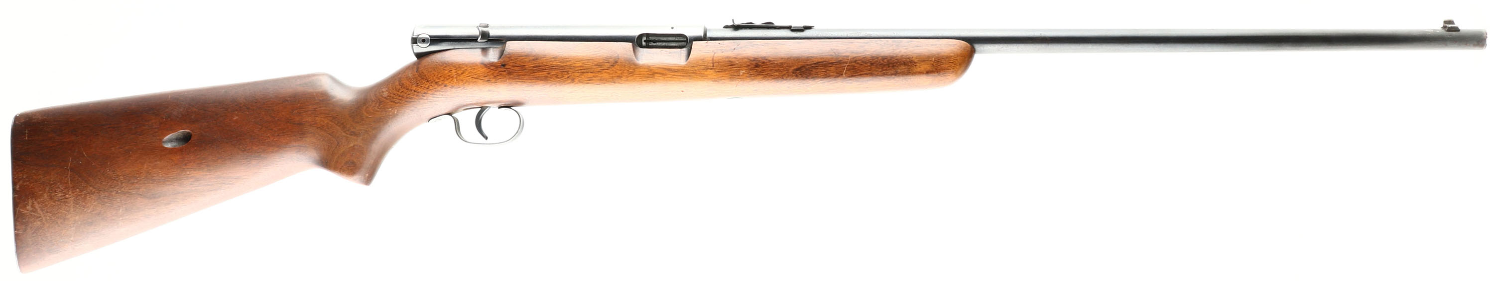 Winchester, Model 74, Marked .22 L. RIFLE Cal., MFG. 1948, SN: 208855A, Semi-Auto Rifle, 22'' Tapered round barrel, The original flat pistol grip wood stock is excellent, with some minor scuffs, scrapes & thinning to the original finish. Factory metal blue is 80% on barrel. 70% on the receiver. Bore is excellent. Factory sights. Loads through mag located in the stock. Original semi-auto .22. FFL or C&R Req - Value: 250 to 500