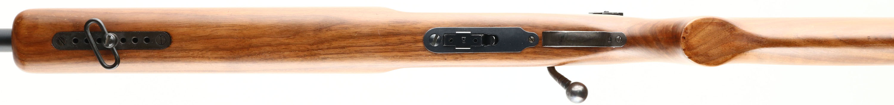 Remington, Model 513-T ''The Matchmaster'', CAL: 22LR, MFG: 1941, SN: 4158, Bolt Action Rifle, 27'' barrel. This rifle has been nicely refinished. The original flat pistol grip target stock is excellent, having been lightly sanded & very nicely refinish. The applied matte black finish has 98% coverage. Bore is very good. The receiver carries a side mounted Lyman 57RS aperture sight, while the barrel carries a ramp elevated small blade front sight. The barrel is tapped & drilled, with (4) filled screw holes for possible scope mounting. Sling loops. Stock carries a checkered metal buttplate. A nicely refinished, early production 513-T. FFL or C&R Req. - Value: 300 to 600